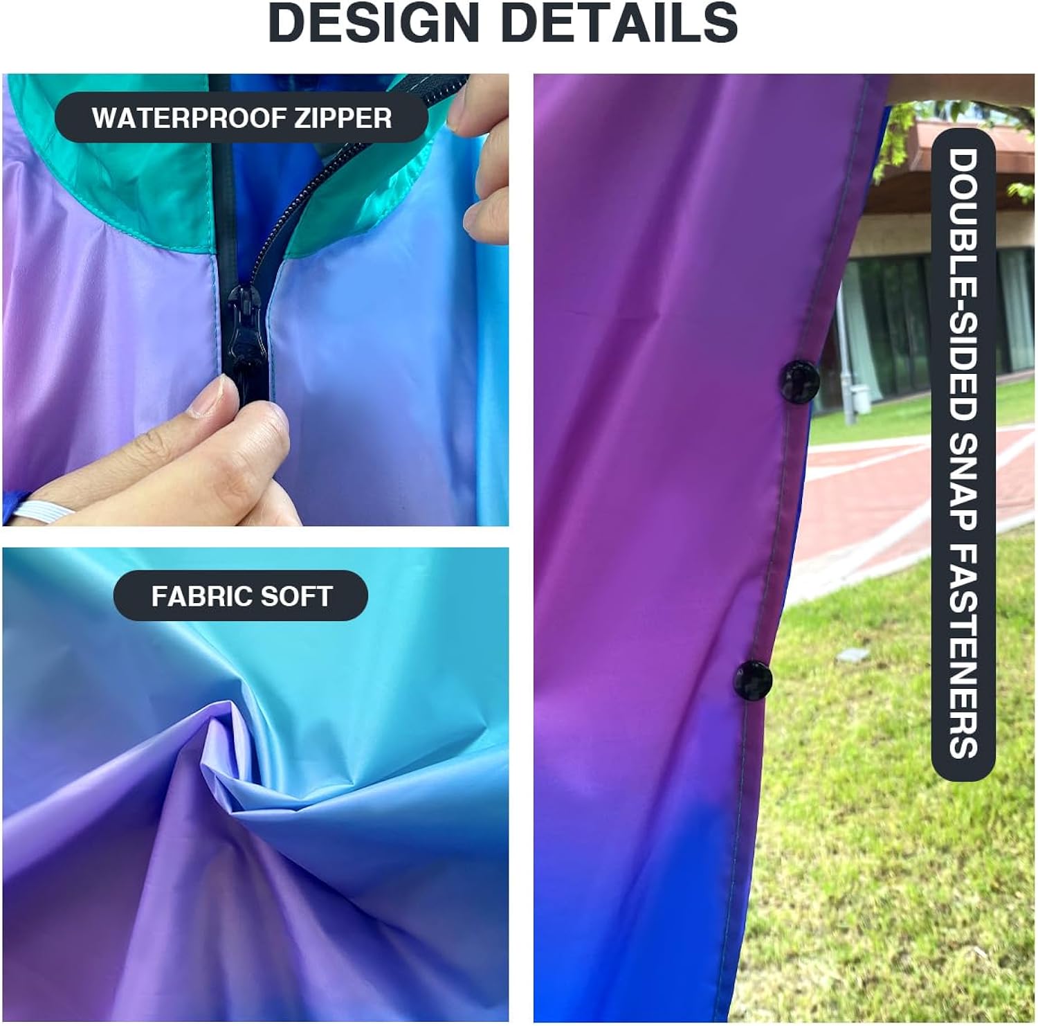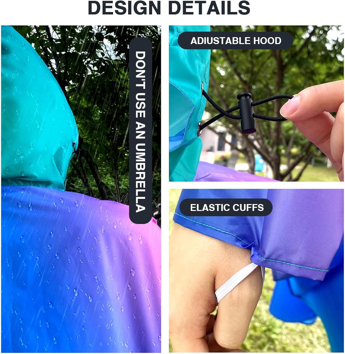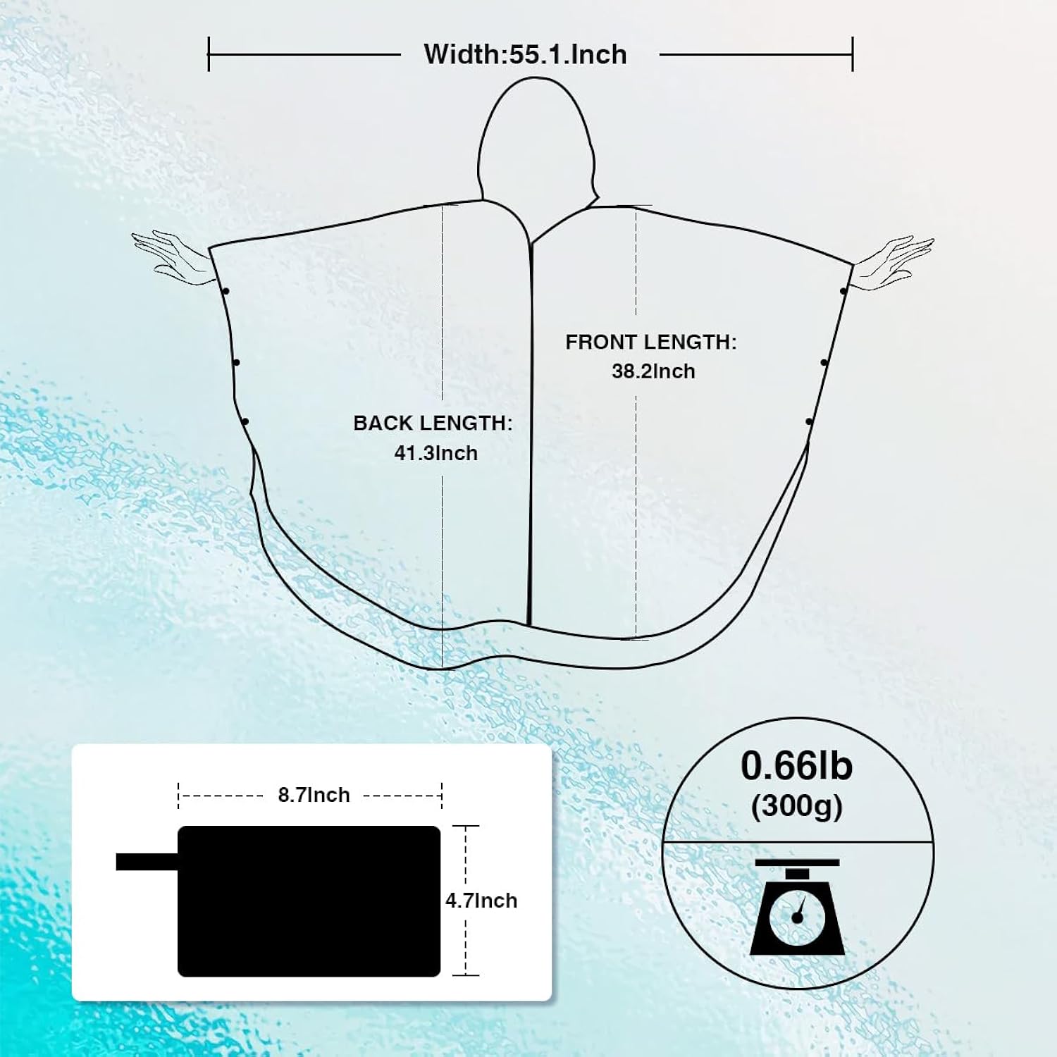 THOUGHTFULLY DESIGNED FOR YOU : This rain poncho is featured with a wide brim hat hooded with drawstrings, keeping your whole body dry in the rain. The zipper closure in the front and 4 snap buttons on each sleeve with an elastic strap are convenient and secure. Its front pocket is quite roomy to store your small objects and keep them dry in rainy days