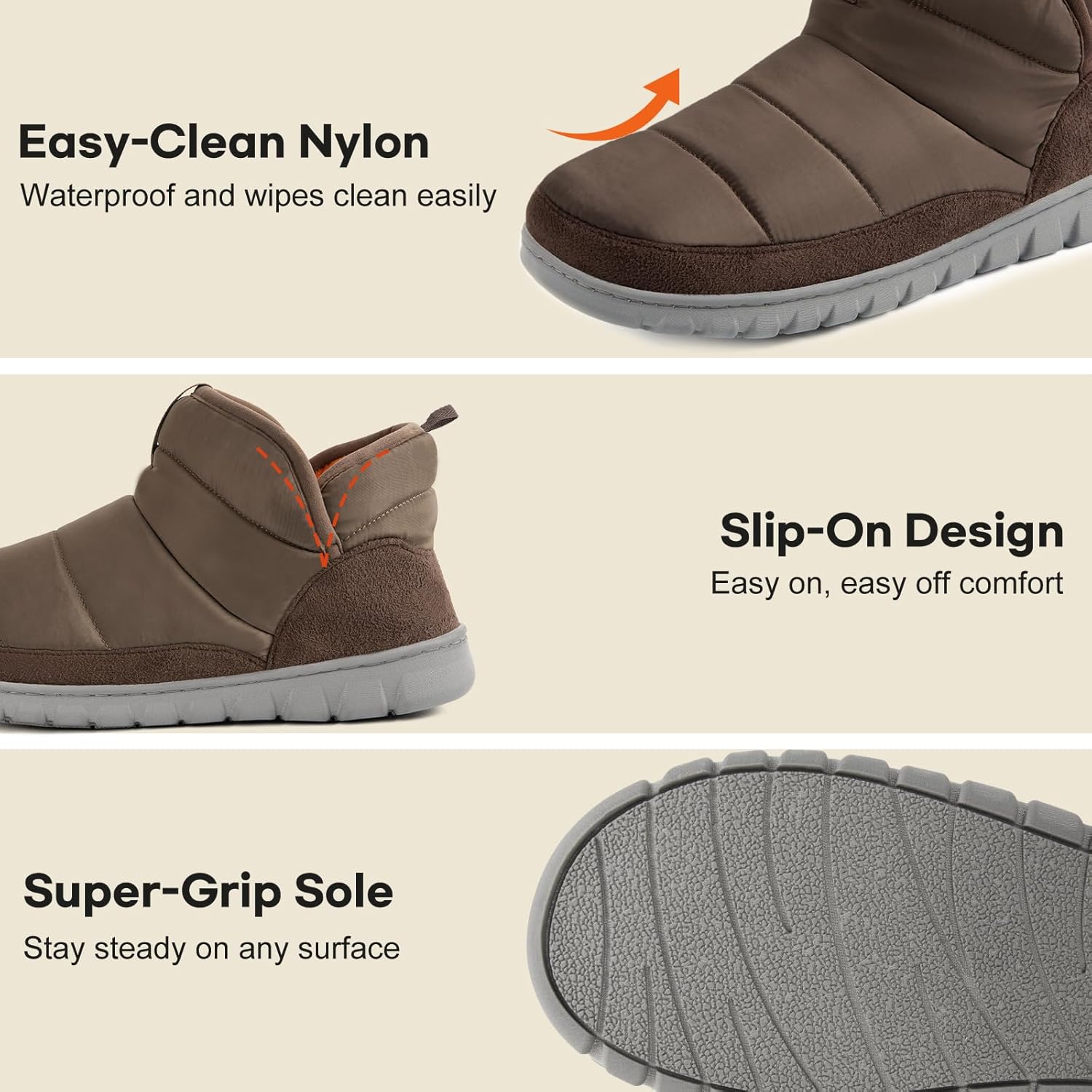 WEAR-RESISTANT NYLON UPPERS: Mens comfy slippers, keeps feet dry and warm, even in snowy weather, providing ultimate comfort around the clock