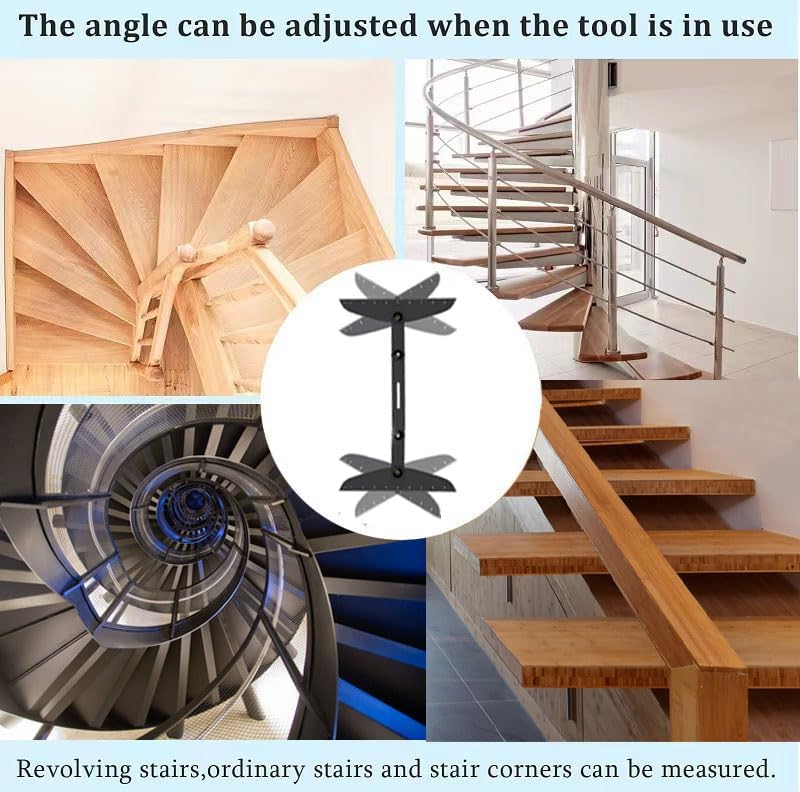 【Easy to Use】 The length of the tool can be easily adjusted with four knobs and locked firmly in place. Insert the stair wizard between two walls, stretch and tighten the screws safely to measure the length and side angles, and then use it to fit the shape of the stair corner.