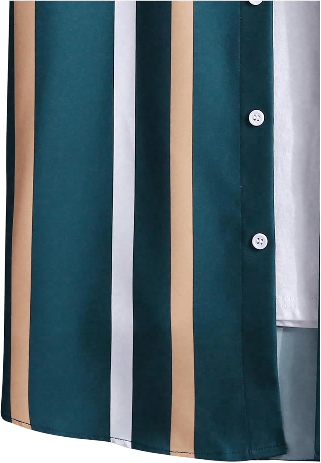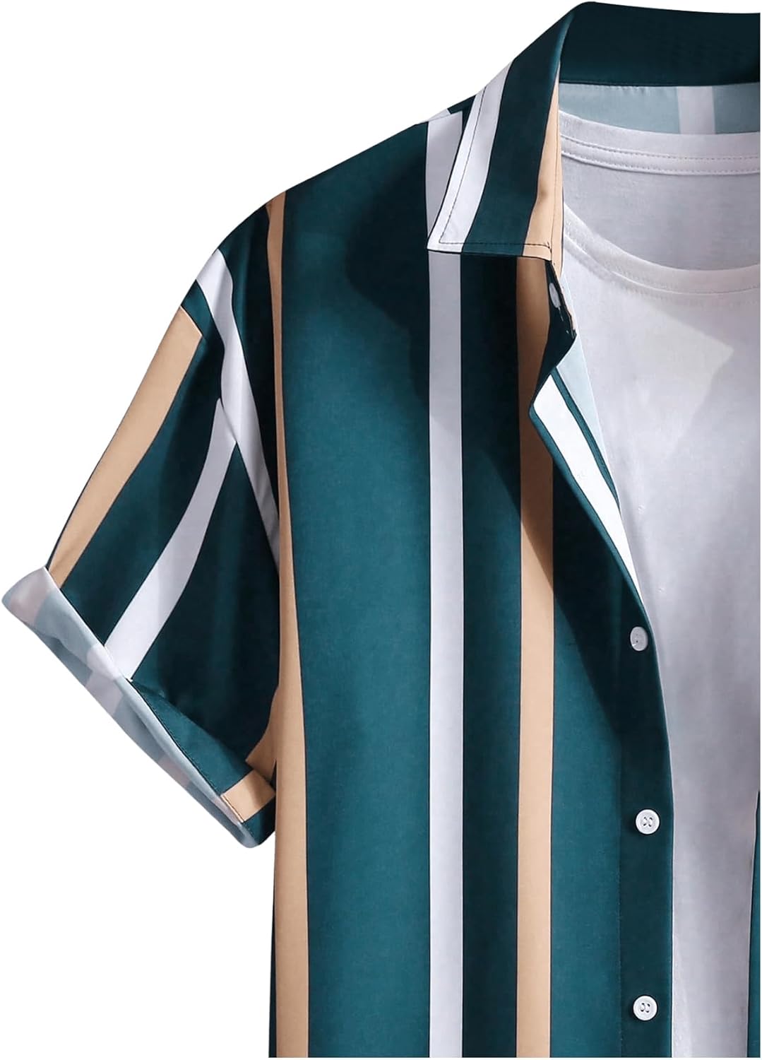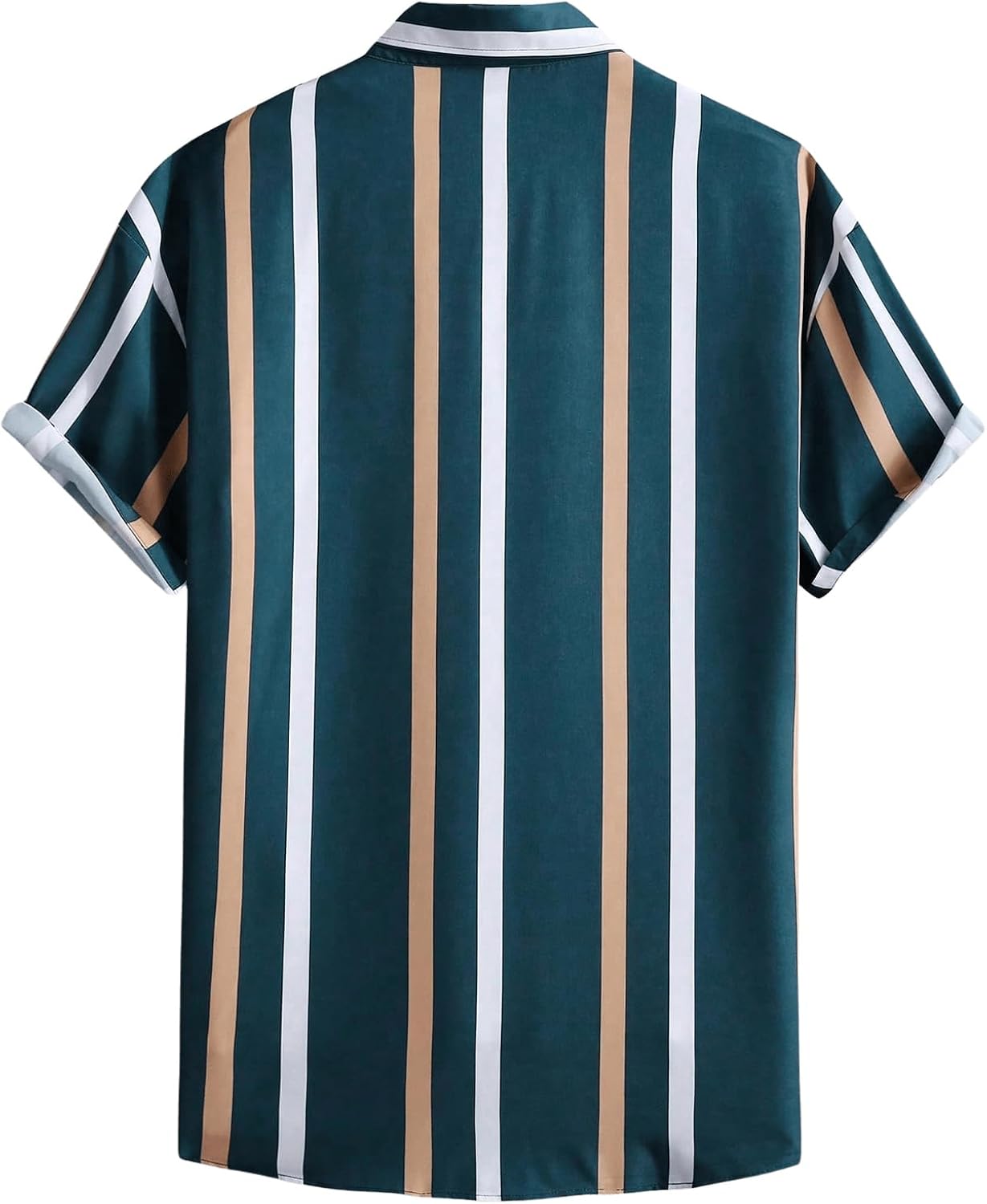 OYOANGLE Men's Color Block Striped Print Short Sleeve Button Up Casual Shirt