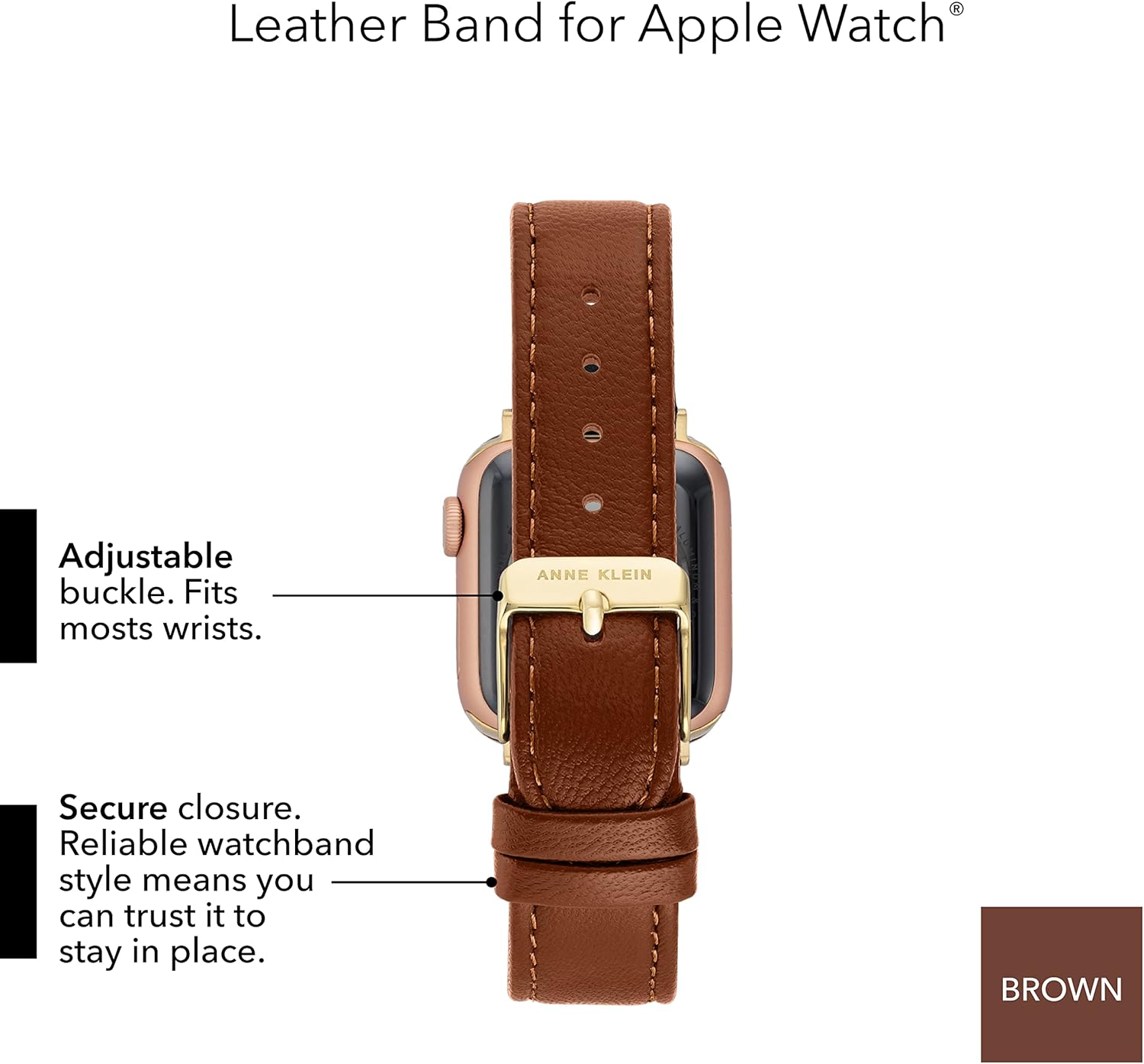 Anne Klein Leather Fashion Band for Apple Watch Secure, Adjustable, Apple Watch Band Replacement, Fits Most Wrists