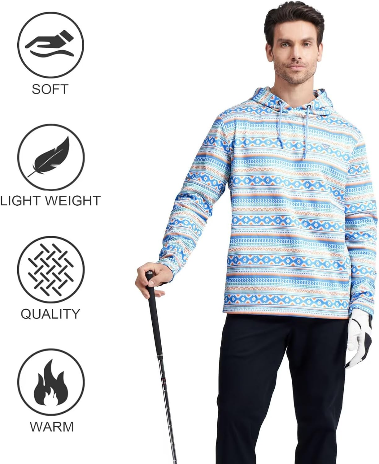PERFORMANCE FABRIC: This mens hoodie is made of polyester fleece-lined fabric for extra comfort, which is Lightweight, easy care, UPF+, soft hand feeling, breathable and stretch with quick-dry properties that keep you warm and comfortable on and off the course.