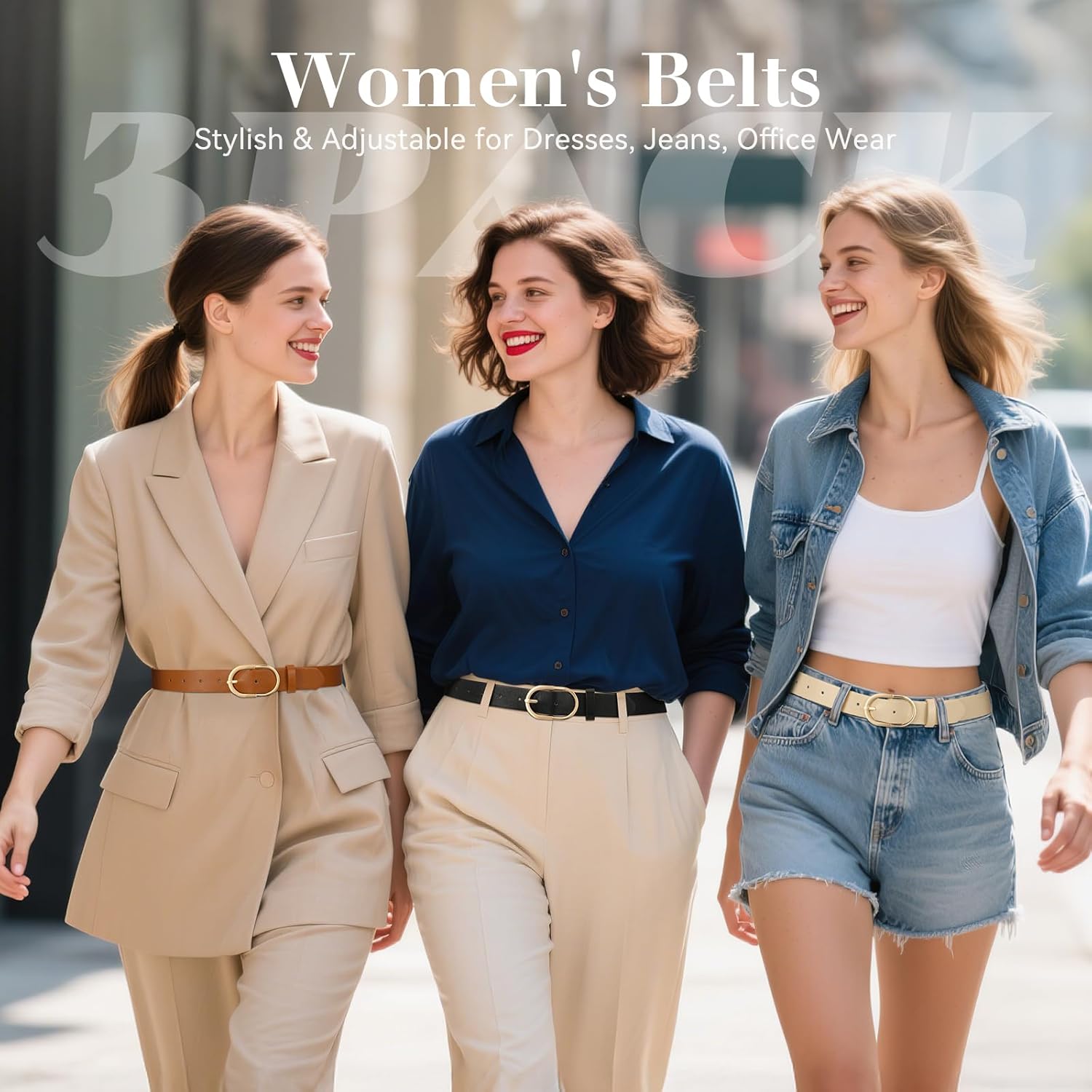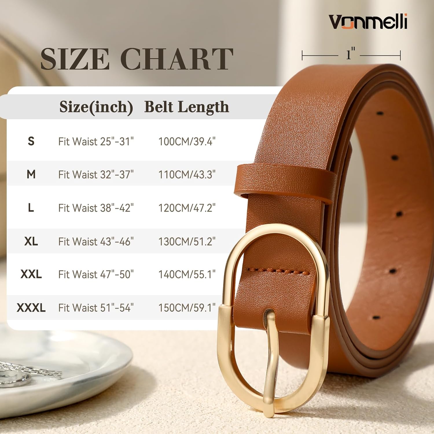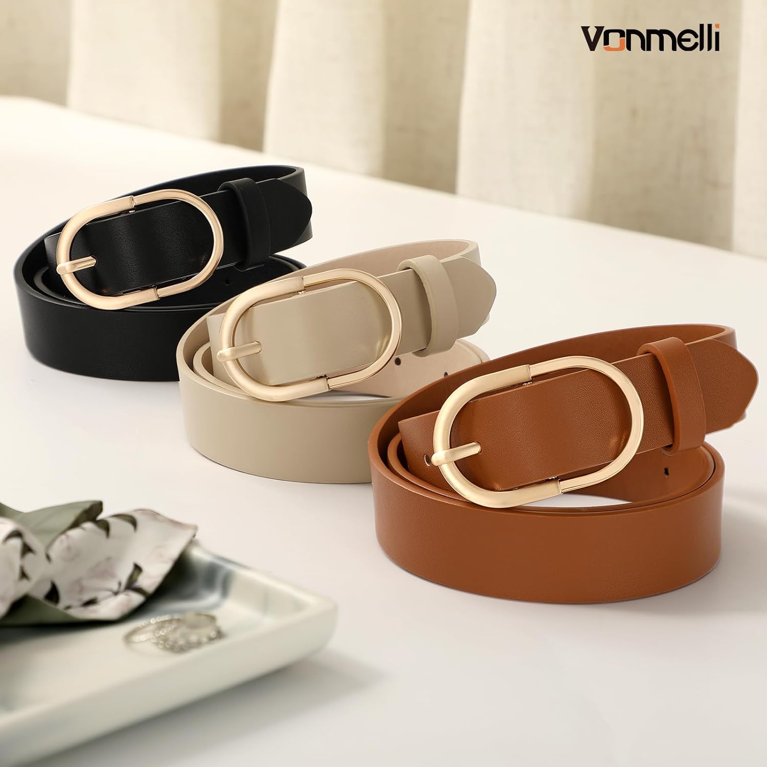 VONMELLI 3 Pack Women's Belts for Jeans Pants Fashion Gold Buckle Ladies Dress Belt