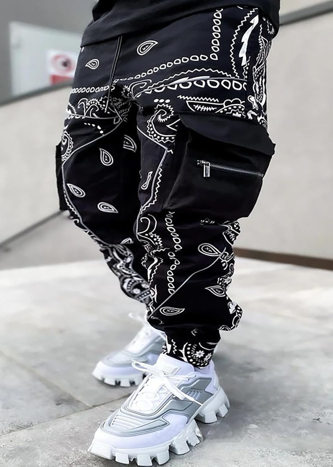 Men's Paisley Pants Cargo Jogger Hip Hop Workout Punk Pants Bandana Techwear Streetwear Sweatpants
