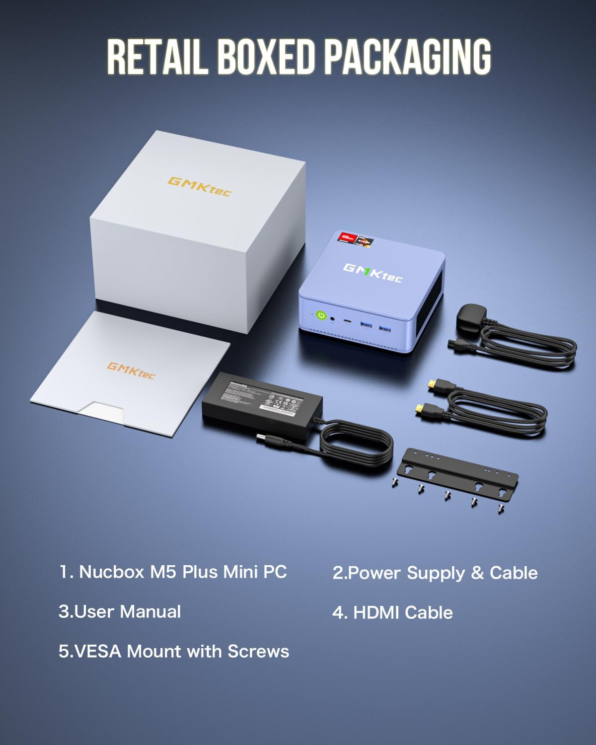 32GB DDR4 RAM & 1TB PCIe SSD - Installed with DDR4 32GB RAM Dual Channel (2x16GB), the Nucbox M5 mini pc support expansion to 64GB RAM. Featured with 1TB M.2 2280 PCIe 3.0 SSD, support dual slot expansion to 4TB SSD. (Upgrades not included)