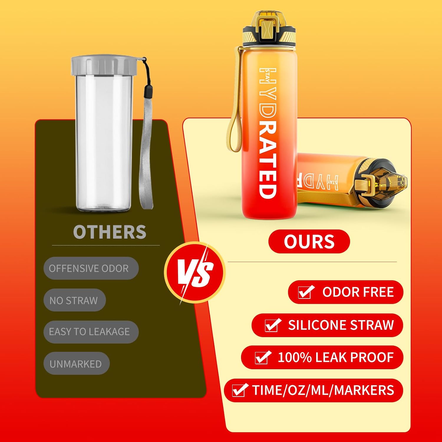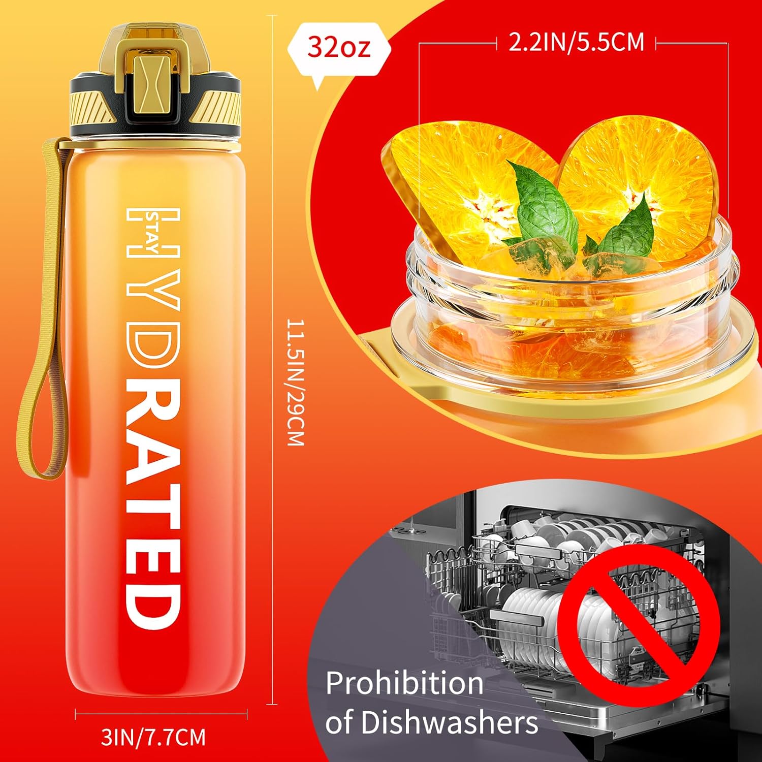 Motivational Time Marker: QLUR 32 oz Water Bottles as your daily partner is designed with motivational quotes by the hour, it keeps your daily water intake on track. The inspirational water bottle helps you stay hydrated throughout the day