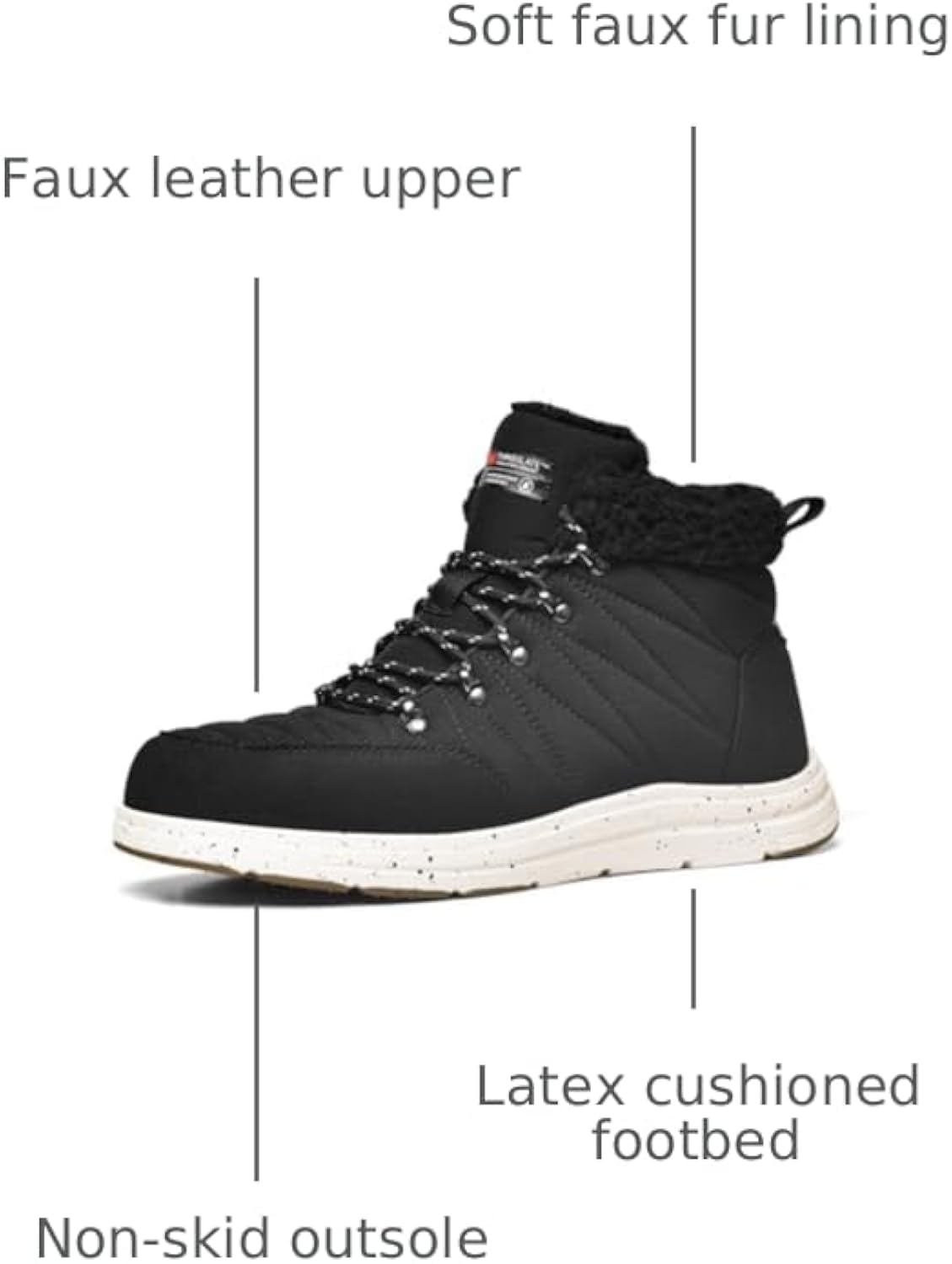Ideal Gift:Well packed with an elegant box,this pair of winter boots are perfect gifts for husband,son,nephew,father,brother,or for yourself.Fully lined with warm faux sherpa,the Bruno Marc winter boots are some of the coziest shoes you'll find.