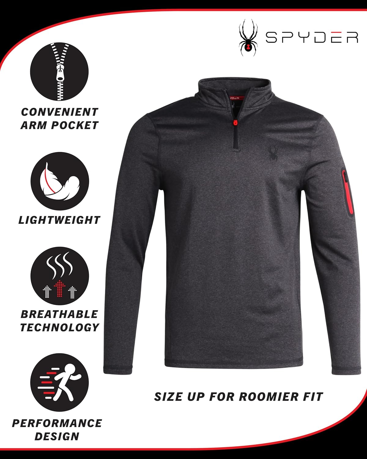 Spyder Men's Active Shirt - Quarter Zip Long Sleeve Performance Pullover - Lightweight Slim Fit Workout Shirt for Men (S-XL)
