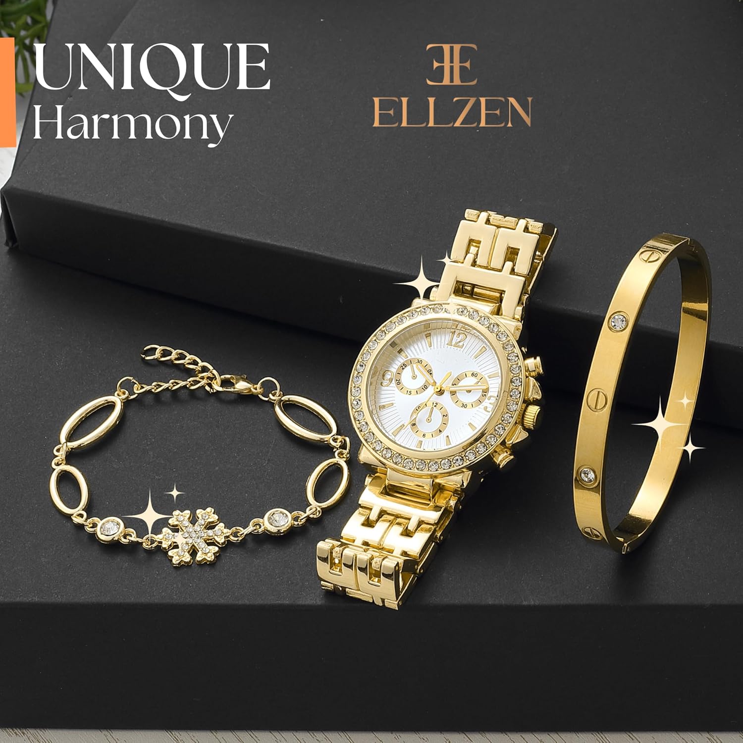 ELLZEN Women's Watch with Gold Bracelet Set, Gold Watches for Women, Gold Bracelets for Women, Womens Fashion Accessories,...