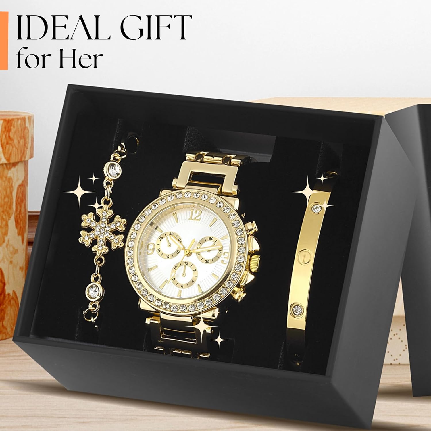Discover the perfect watch and gold jewelry sets for women that combine elegance and style. This set includes a beautiful gold watch, along with stunning bracelets for women, including delicate dainty gold bracelet options. The collection also features versatile gold and silver bracelets for women, making it the ultimate fashion accessory for any occasion. Elevate your fashion with this timeless jewelry for women that adds a touch of to your look.