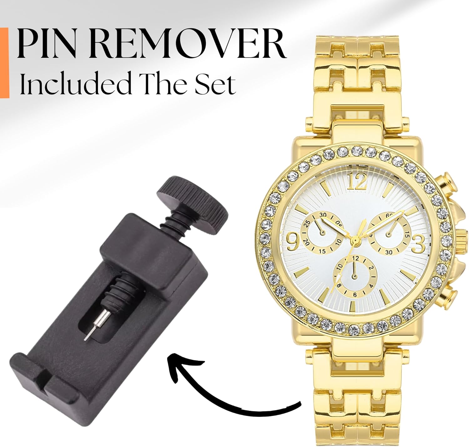 ELLZEN Watch Set offers precise design details, with the bracelet for women featuring a diameter of 2.48 inches and a length of 7.75 inches, and the gold watch having a dial case diameter of 1.41 inches and a thickness of 0.39 inches. This set, perfect for women birthday gifts or mom gifts birthday, fits comfortably on any wrist and ensures a chic, stylish look.
