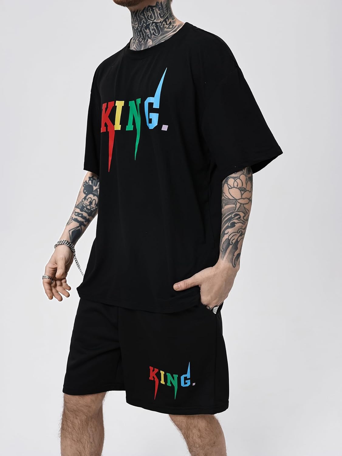 SOLY HUX Men's Letter Graphic Short Sleeve Tee and Drawstring Waist Track Shorts Set Casual 2 Piece Outfit
