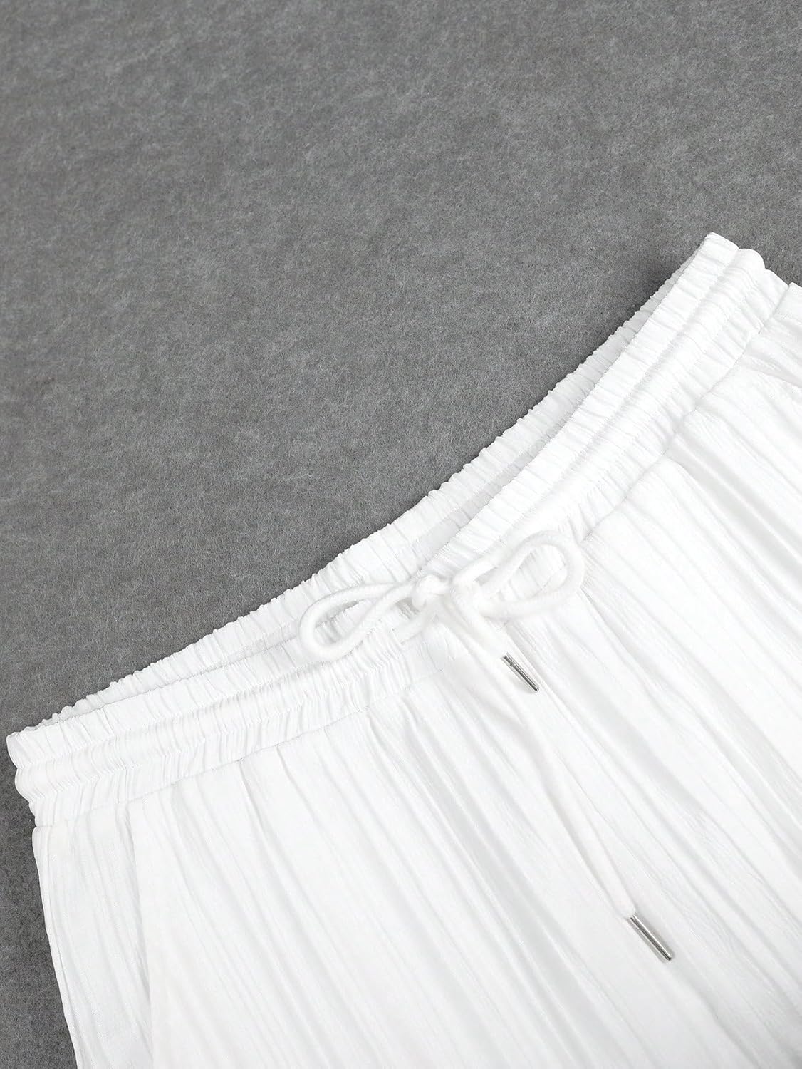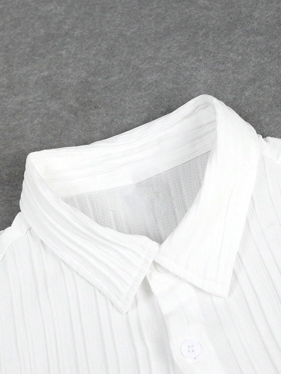 Features: Button up, casual, plain, drawstring, pocket, button front, collar, short sleeve, 2 piece set.