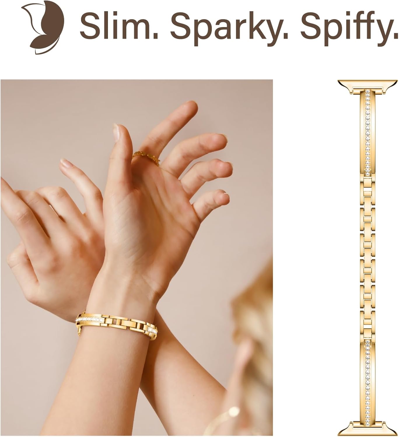 On-trend Slender Aesthetic: At merely 0.3” wide, the slim apple watch slim band adds a feminine appeal to your wrist. The sparky diamonds lining in the middle are hand-inlaid and firmly embedded to ensure each sparkle shines evermore.