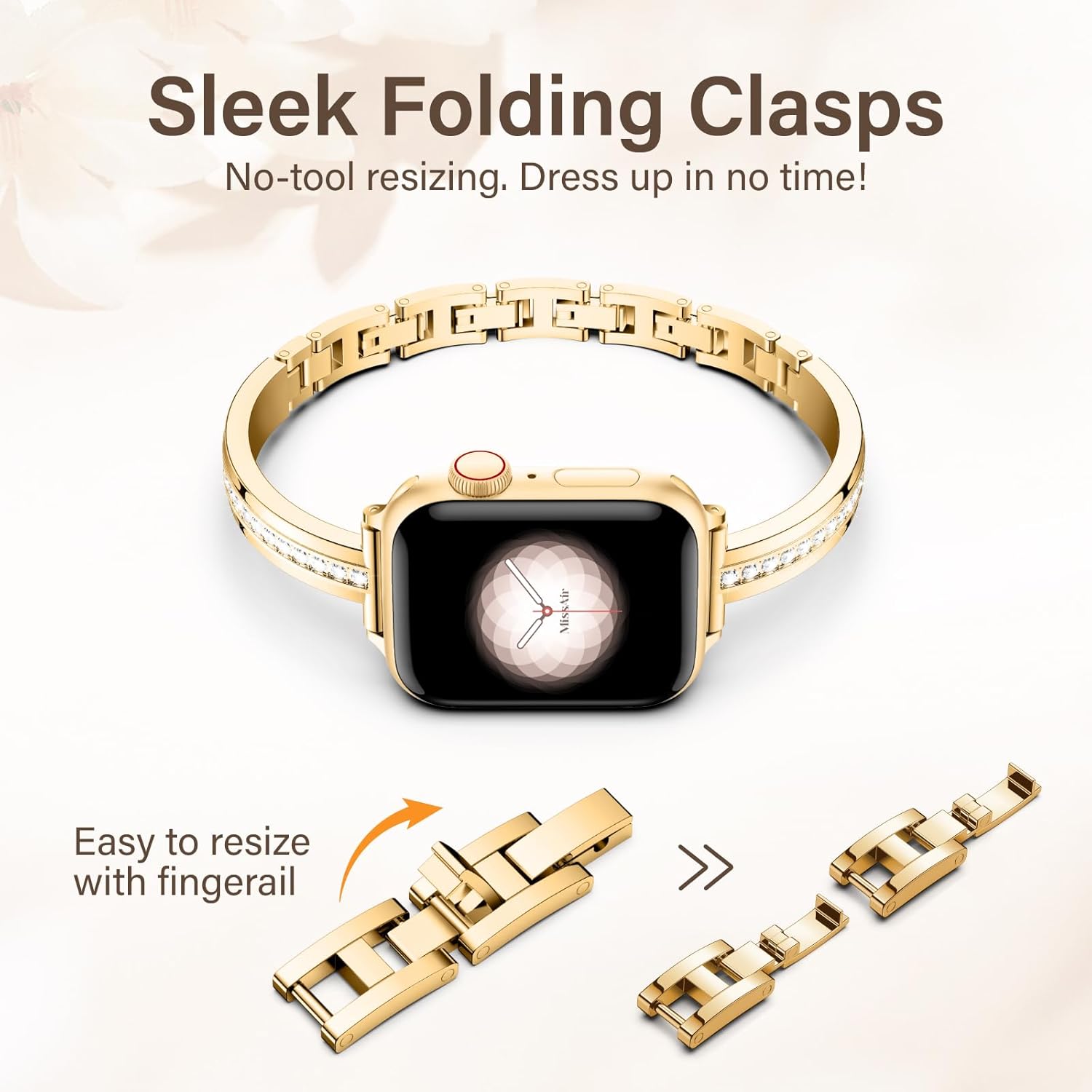 Easy No-Tool Resizing: Ditch those hassling tools for adjustment! The links on this apple watch bracelet band are detachable just with a flick. Simply open any of the folding clasps, remove or add for a custom fit, then jazz up in no time!