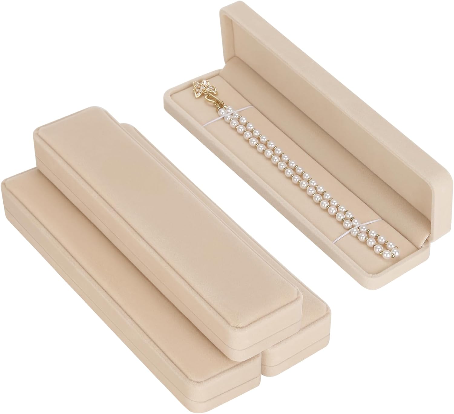 LETURE 4 Pieces Velvet Bracelet Necklace Pendant Jewelry Box, Small Long Jewelry Watch Gift Box for Proposal, Wedding, Eng...