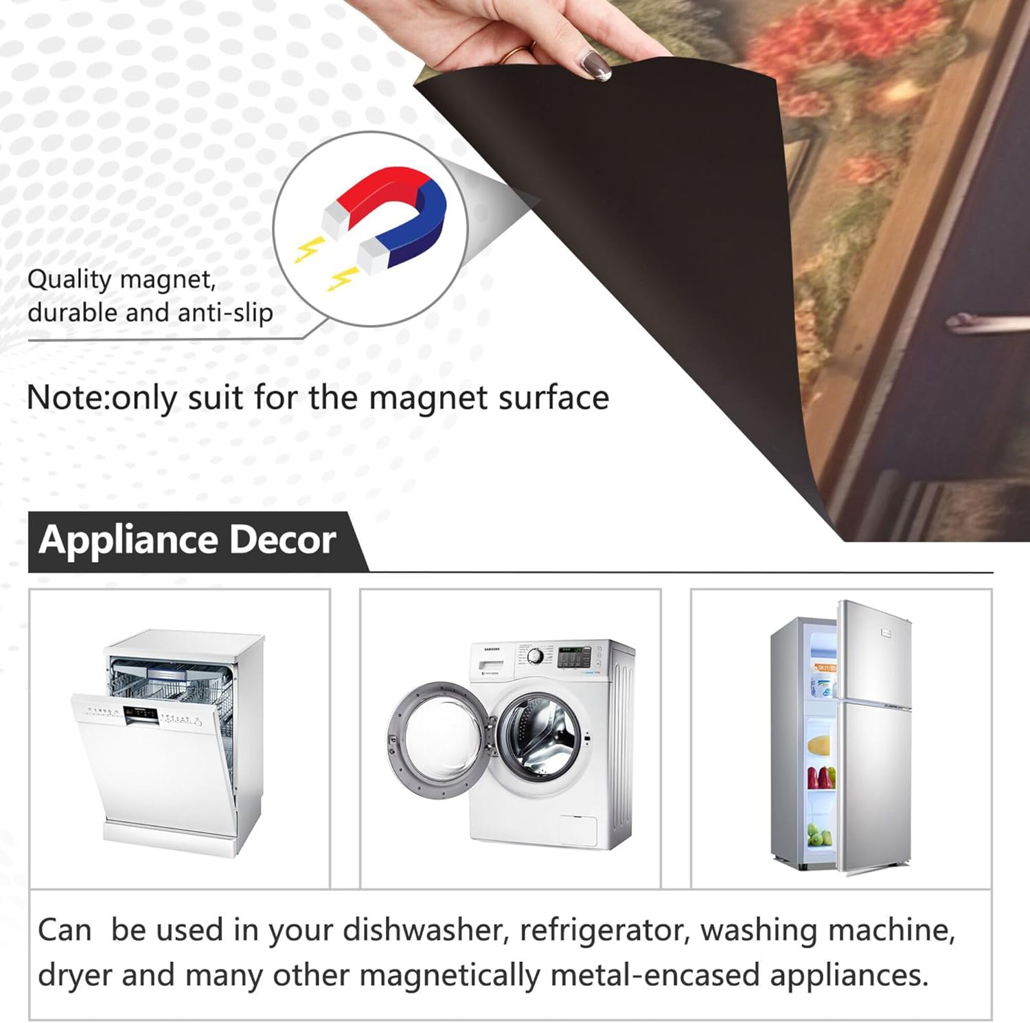 ??【MAGNETIC AND EASILY TRIMMABLE】: 23W x 26H inch(58.42x66.04cm).Trimmable to fit most standard dishwasher doors or any magnetic panel. This magnetic decal is simple to install and remove, you can easily trim off the bottom for no more falling off or make sure the bottom part sticks to the machine after applying to make the decal lay flat,No smelling adhesives to deal with and no massive prep work when sticking or removing.