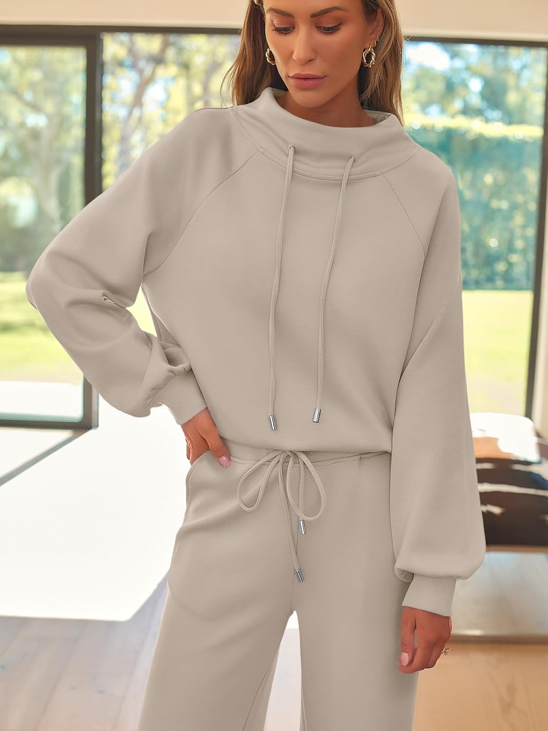 Design: In thick, comfortable fabrics,winter clothes for women, womens fall fashion 2024.This lounge tracksuit consists of a drawstring pullover sweatshirt and wide leg sweatpants. The stand-up collar makes the clothes more fashionable, comfortable and elastic, which can give you a better and more pleasant wearing experience.