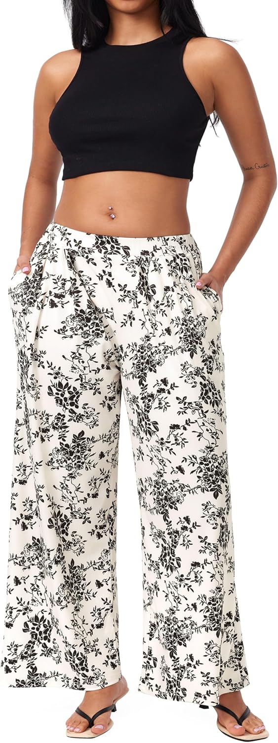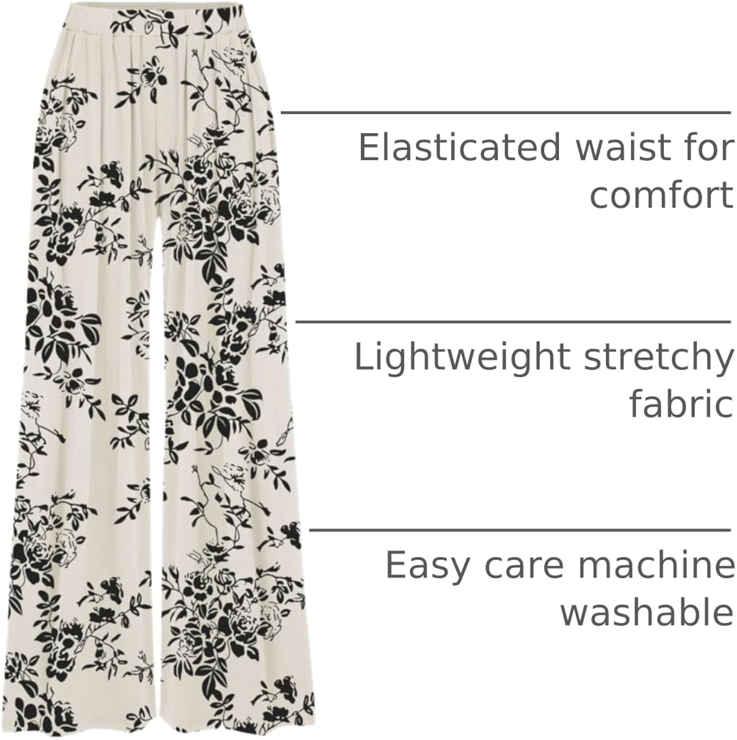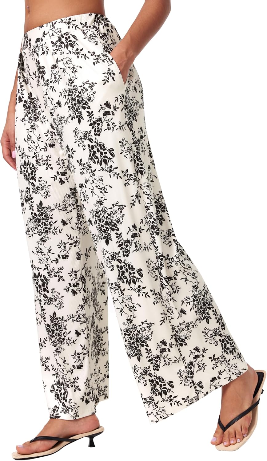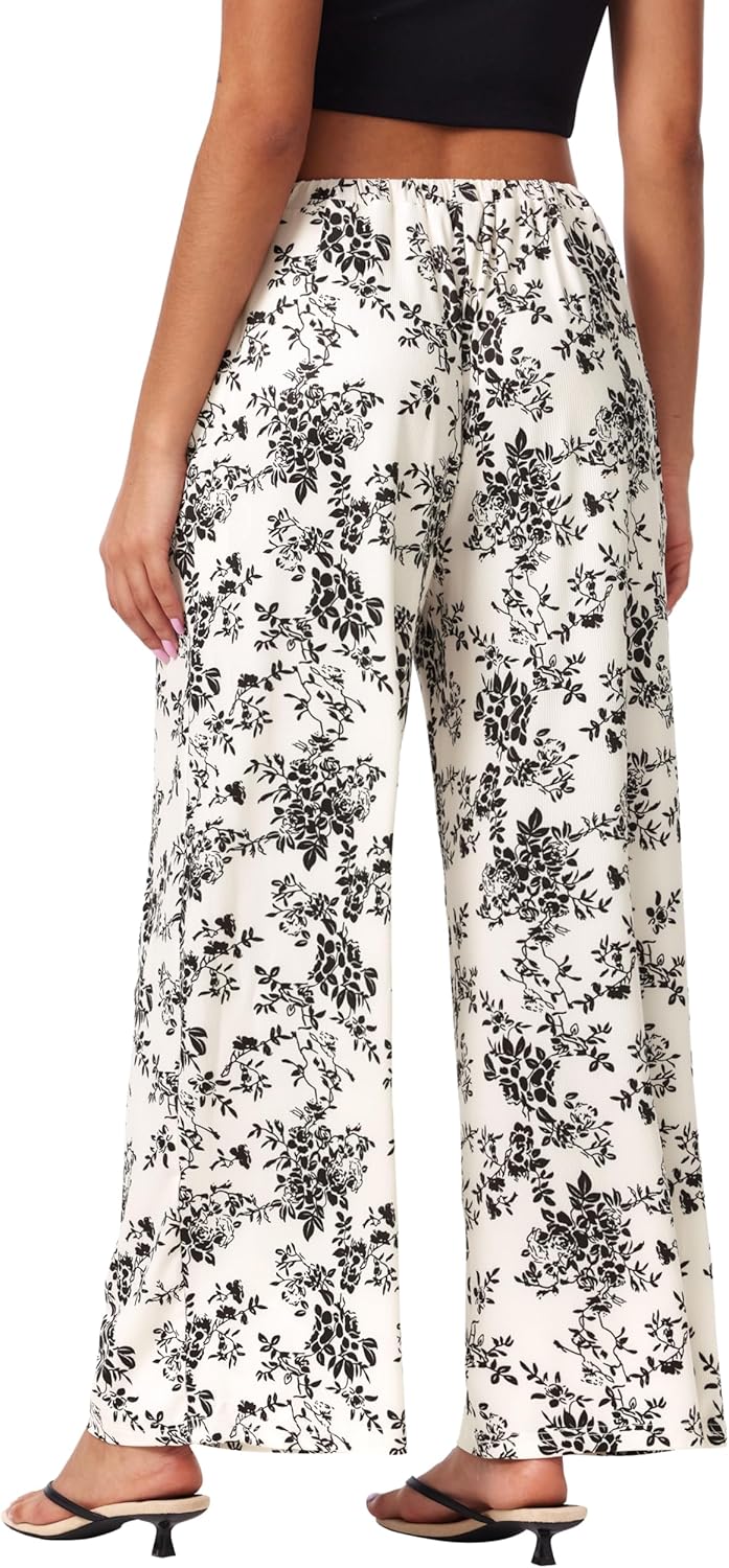 CIDER Wide Leg Palazzo Pants for Women with Pockets Elastic Business Causal Pants Women Summer for Beach Travel Trousers