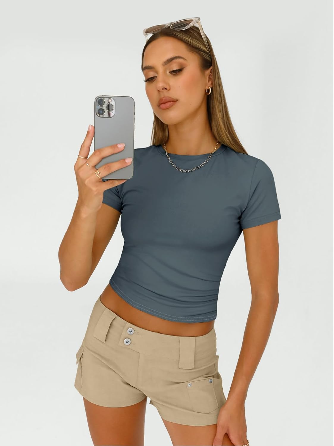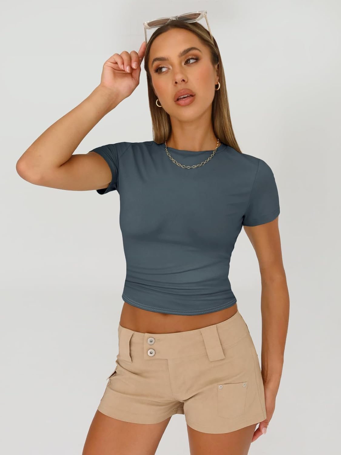 Y2k Design: Cropped and regular style,you can wear it regularly or fold it up like a crop top.cute,slim fitted,casual style,crew neck,short sleeve