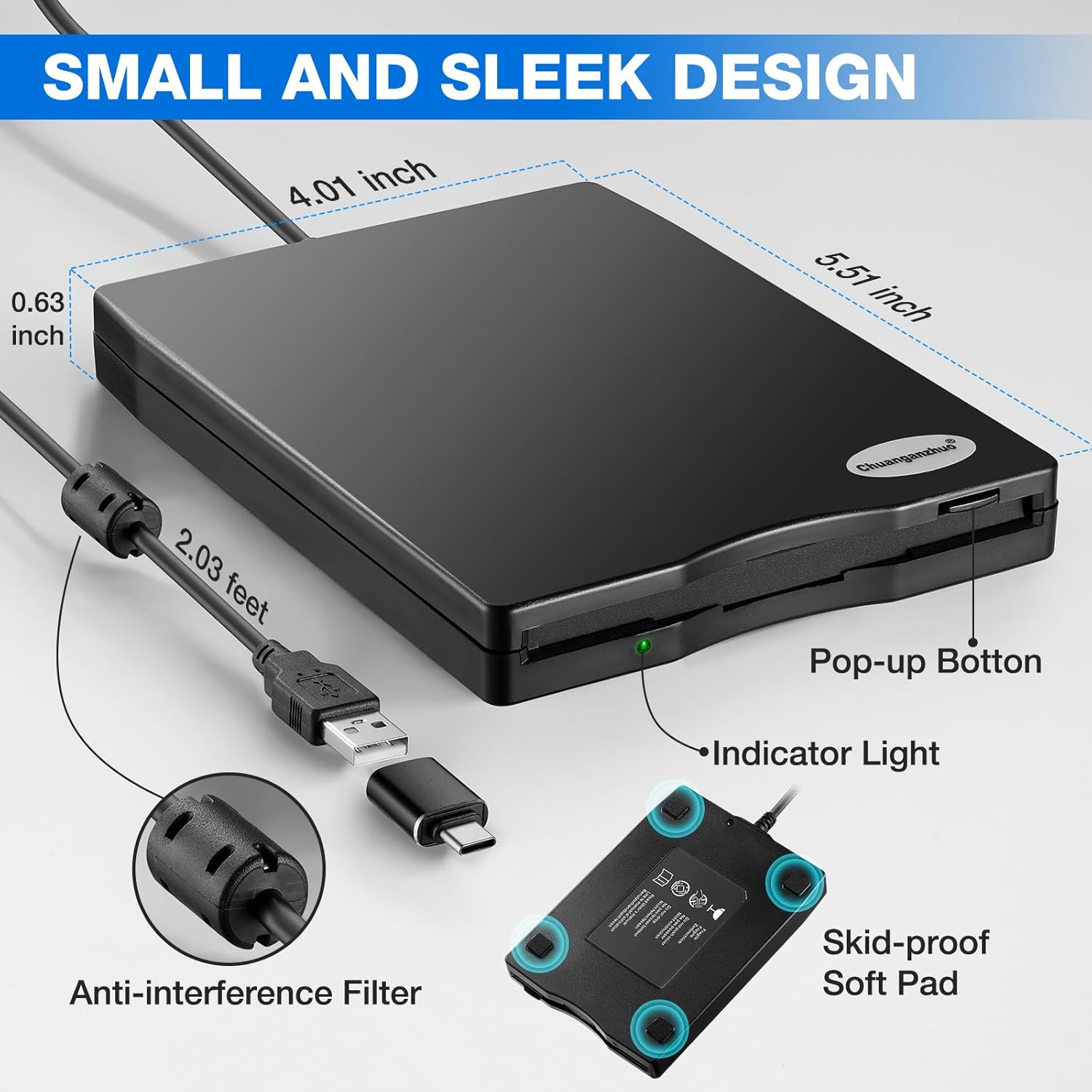 3 1/2 Floppy Disk Reader: As most modern laptops and desktop computers no longer come equipped with internal floppy disk drive for reading floppy diskettes, this 3.5 inch external USB floppy disk drive is an excellent solution to reading and writing your old floppy disks as easy as a built-in floppy disc reader. Retrieve Your Memories, for all the people that grew up with floppy disks, this is a return to the past.