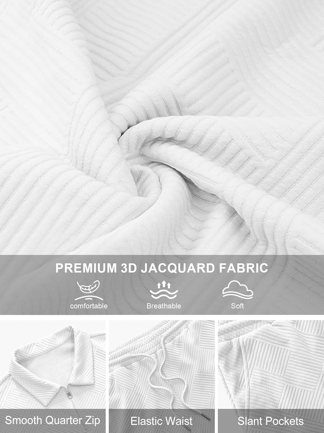 Stylish Design: Features a classic polo collar with a front 1/4 zipper, featuring a 3D striped jacquard craftsmanship, blending retro charm with a modern athletic style.