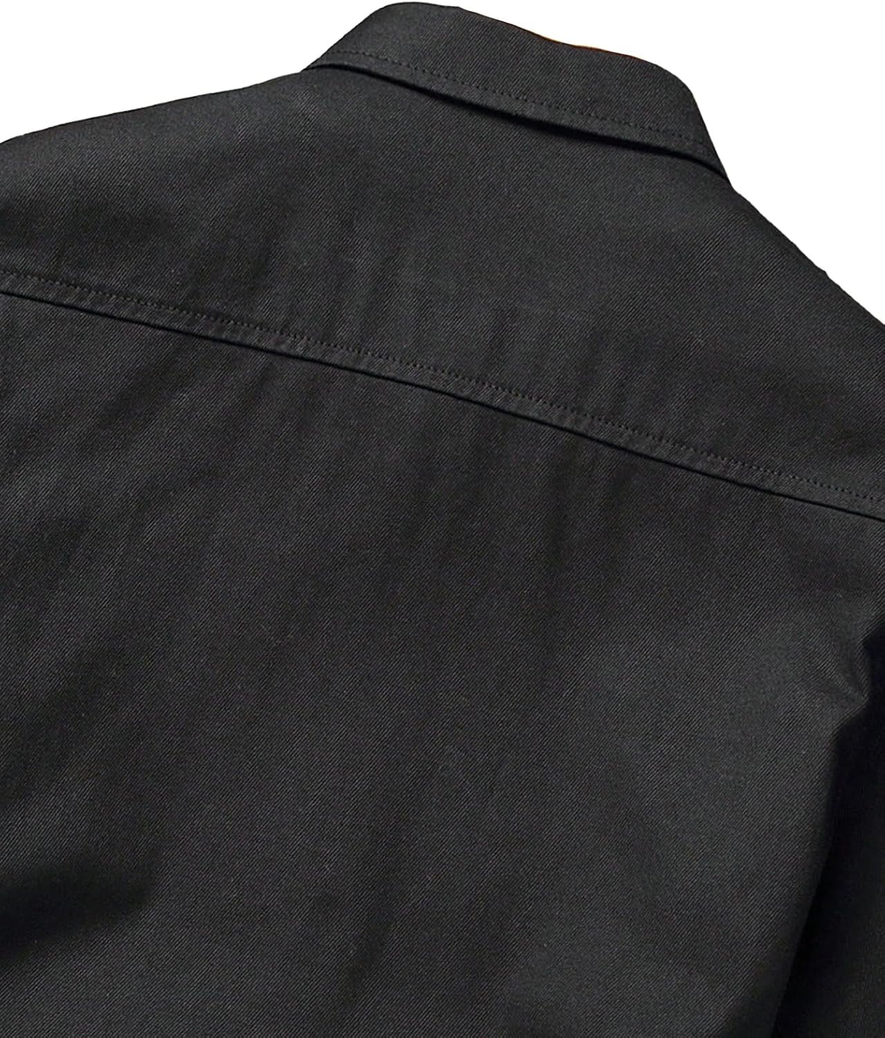Feature: Dark grey, ripped, button front, short sleeve denim shirt