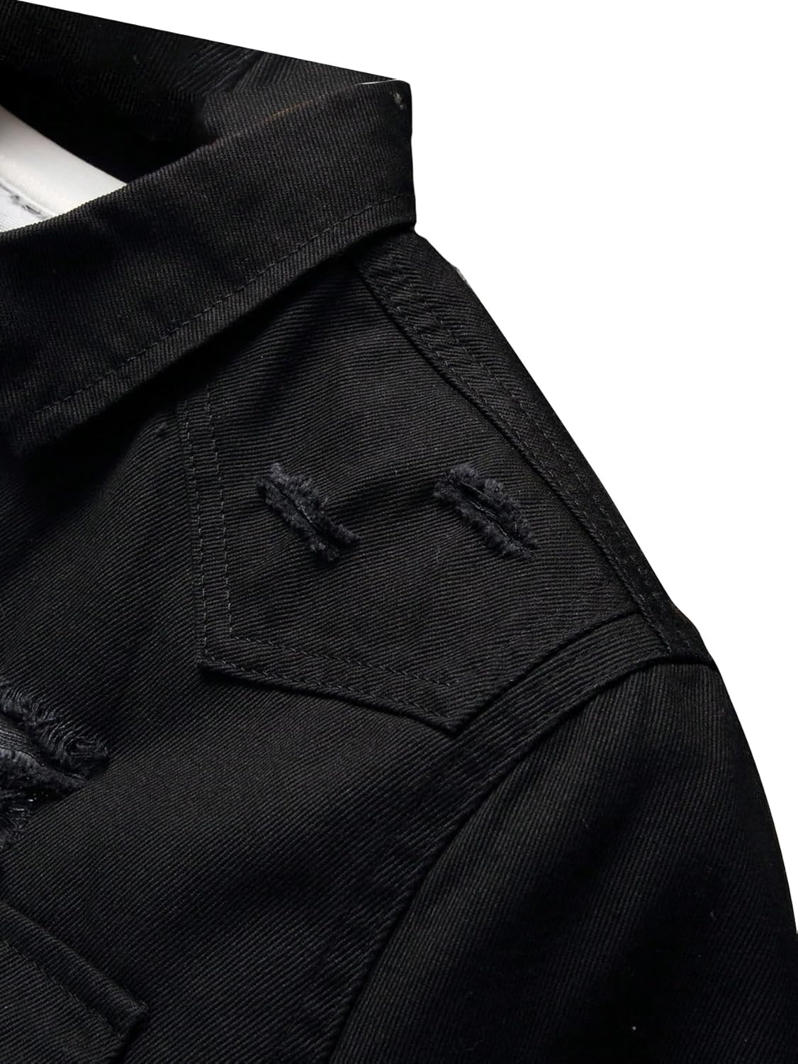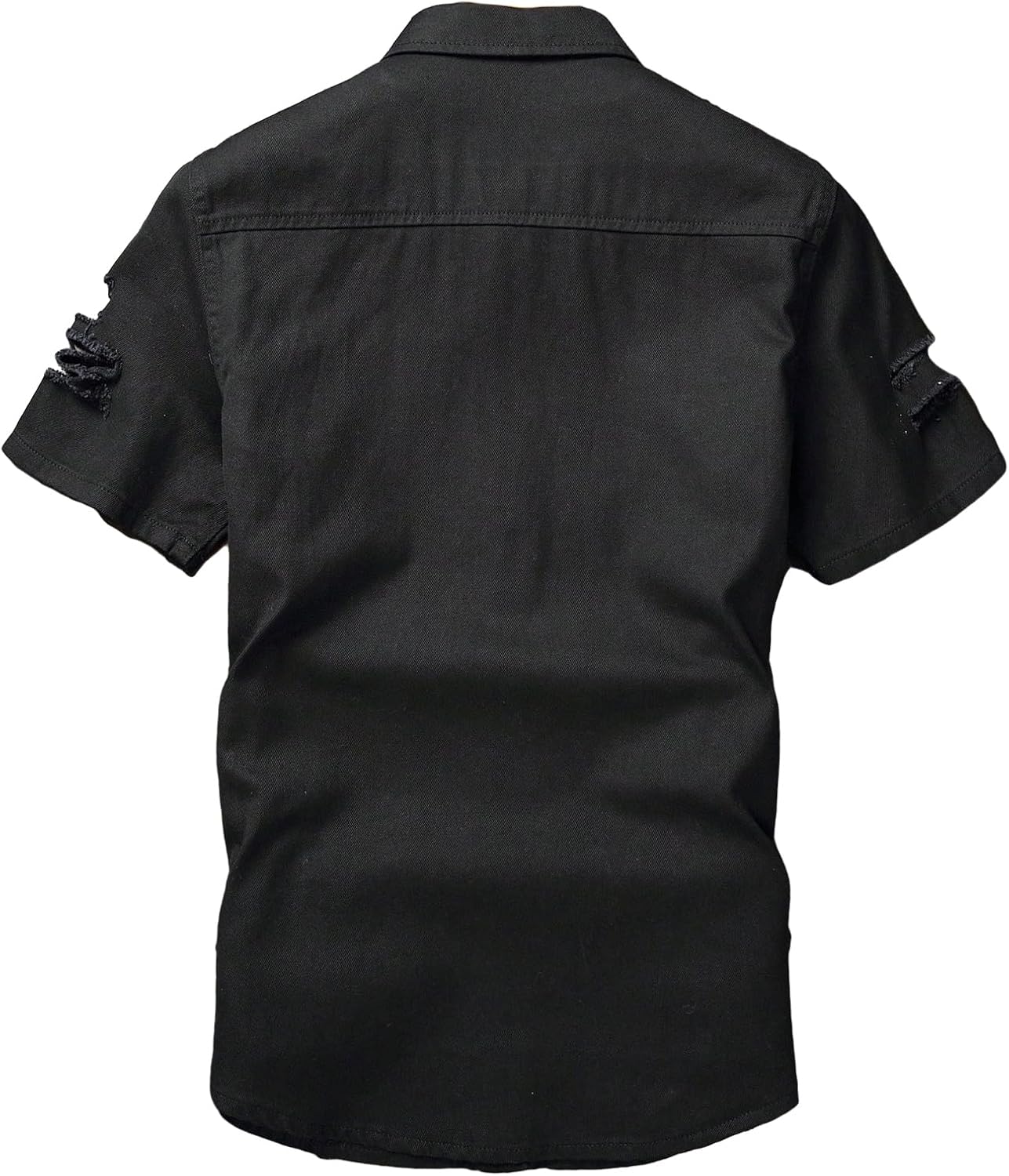 Floerns Men's Causal Ripped Button Front Dual Pocket Short Sleeve Denim Shirt Without Tee
