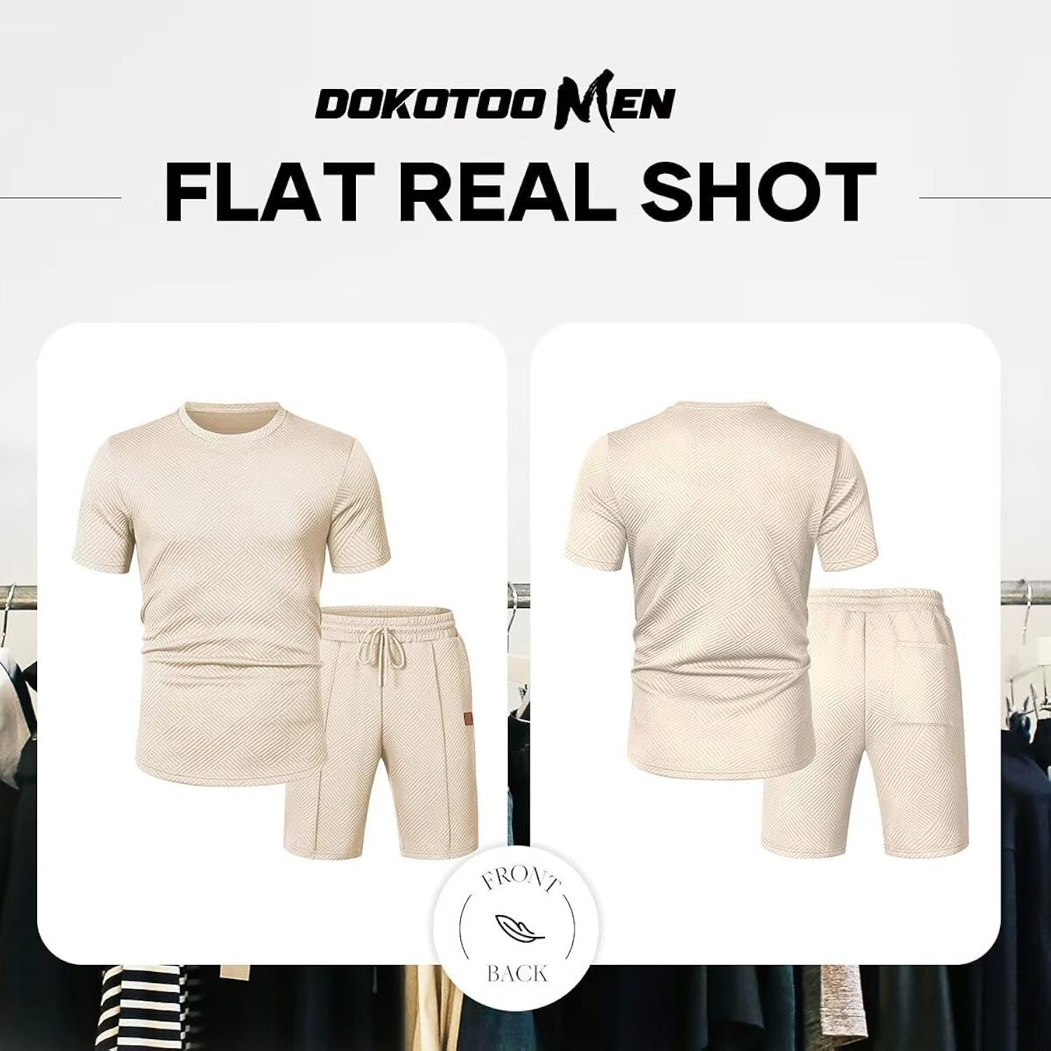 Dokotoo Men Mens Short Sets 2 Piece Outfits Summer Casual T Shirts and Shorts Tracksuit Sets with Pockets