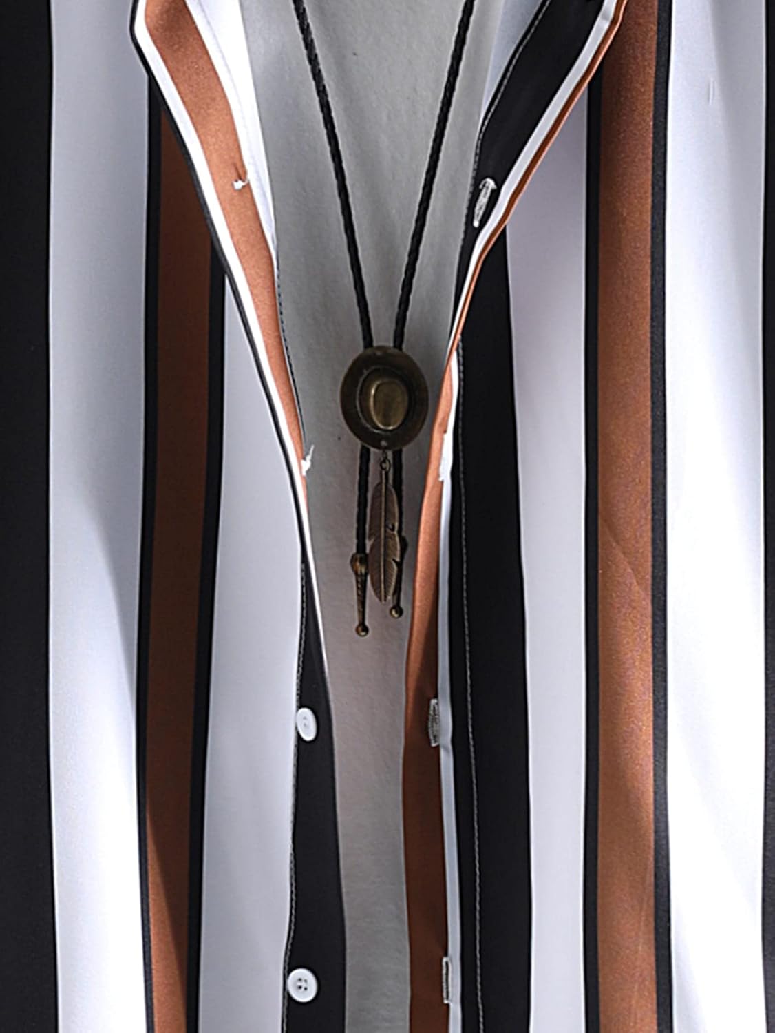 Features: Collar, Short Sleeve, Striped, Button Down Shirt, Drawstring Waist, Casual Shorts