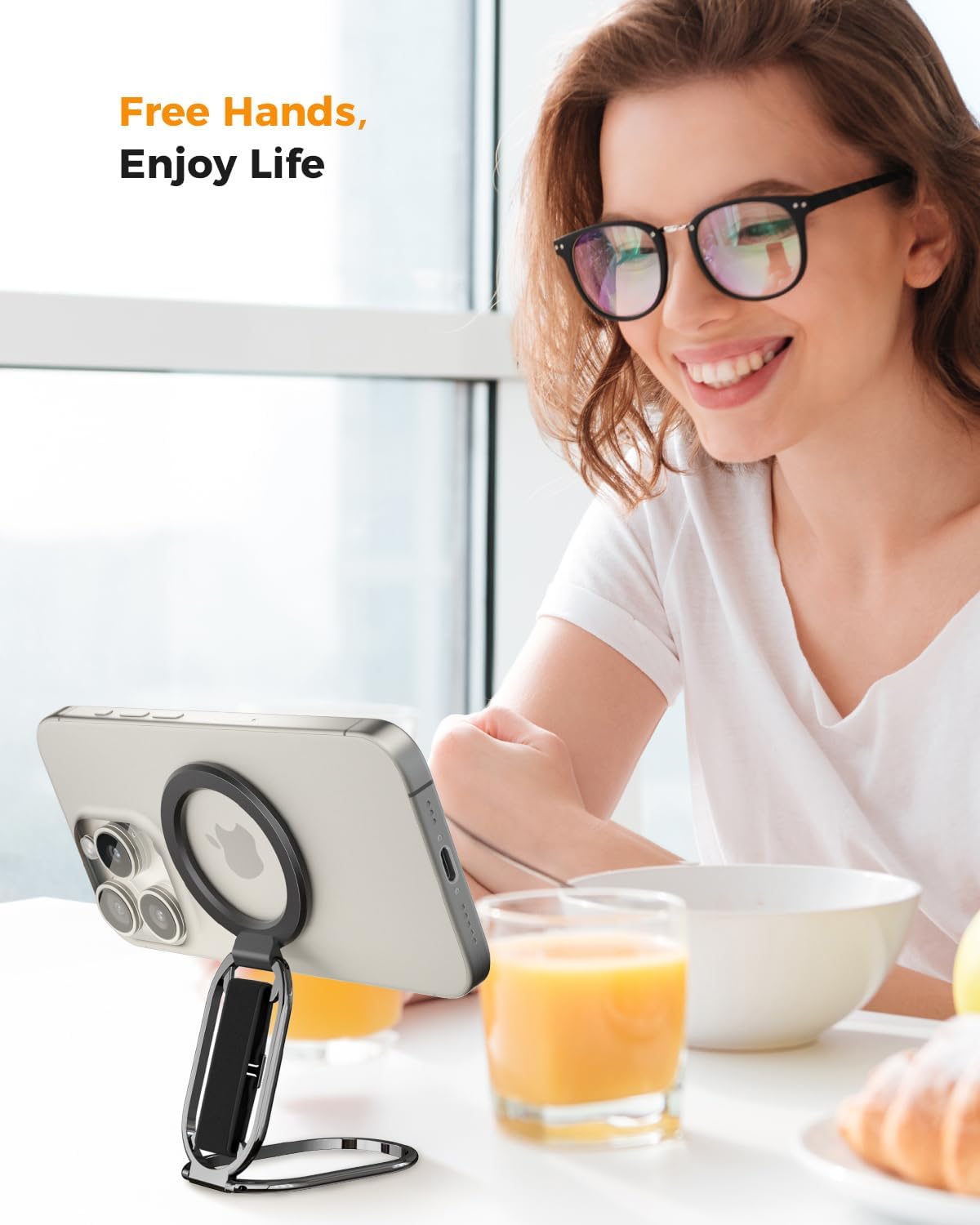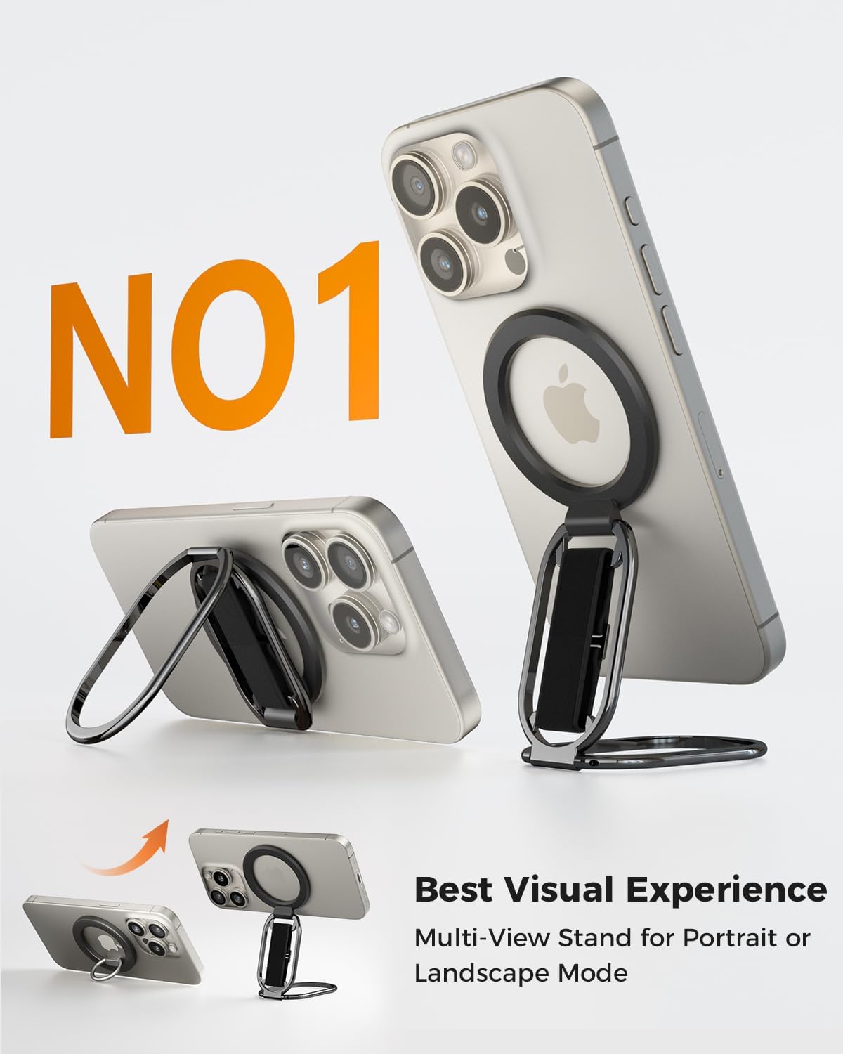 [??????????-???????? ??????????] The iphone magsafe kickstand features a multi-angle adjustable kickstand that rotates 360°, with dual joints flipping 280° and 360°, tested to withstand 50,000 folds without getting loose. It provides hands-free viewing in both portrait and landscape modes. Use it as a magnetic phone stand to prop up your phone for watching videos, movies, YouTube, TikTok, taking selfies, or FaceTime someone.