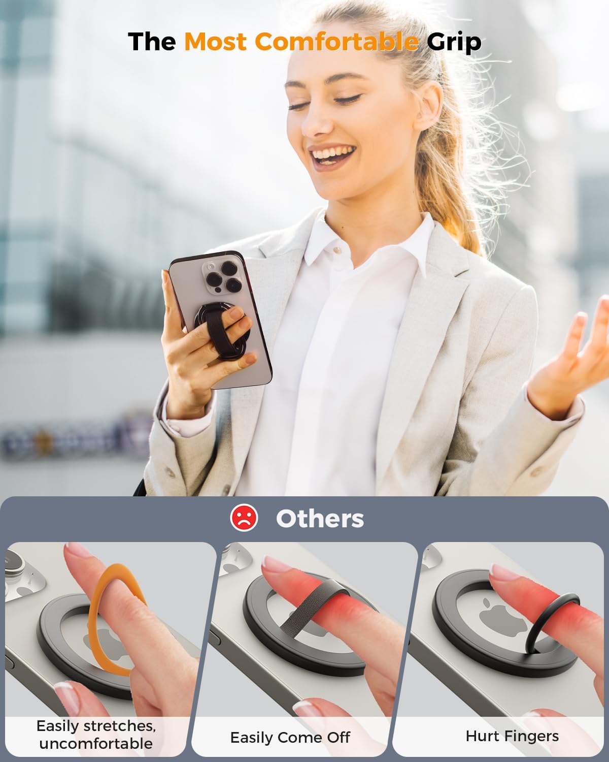 [???????? ?????????????????????? ????????] Equipped with a adjustable soft Velcro adjustment strap, the tightness of the strap can be flexibly adjusted based on your fingers, providing a more comfortable and secure grip as an iphone ring grip. Unlike metal rings, it won't make your fingers feel uncomfortable when holding your phone.