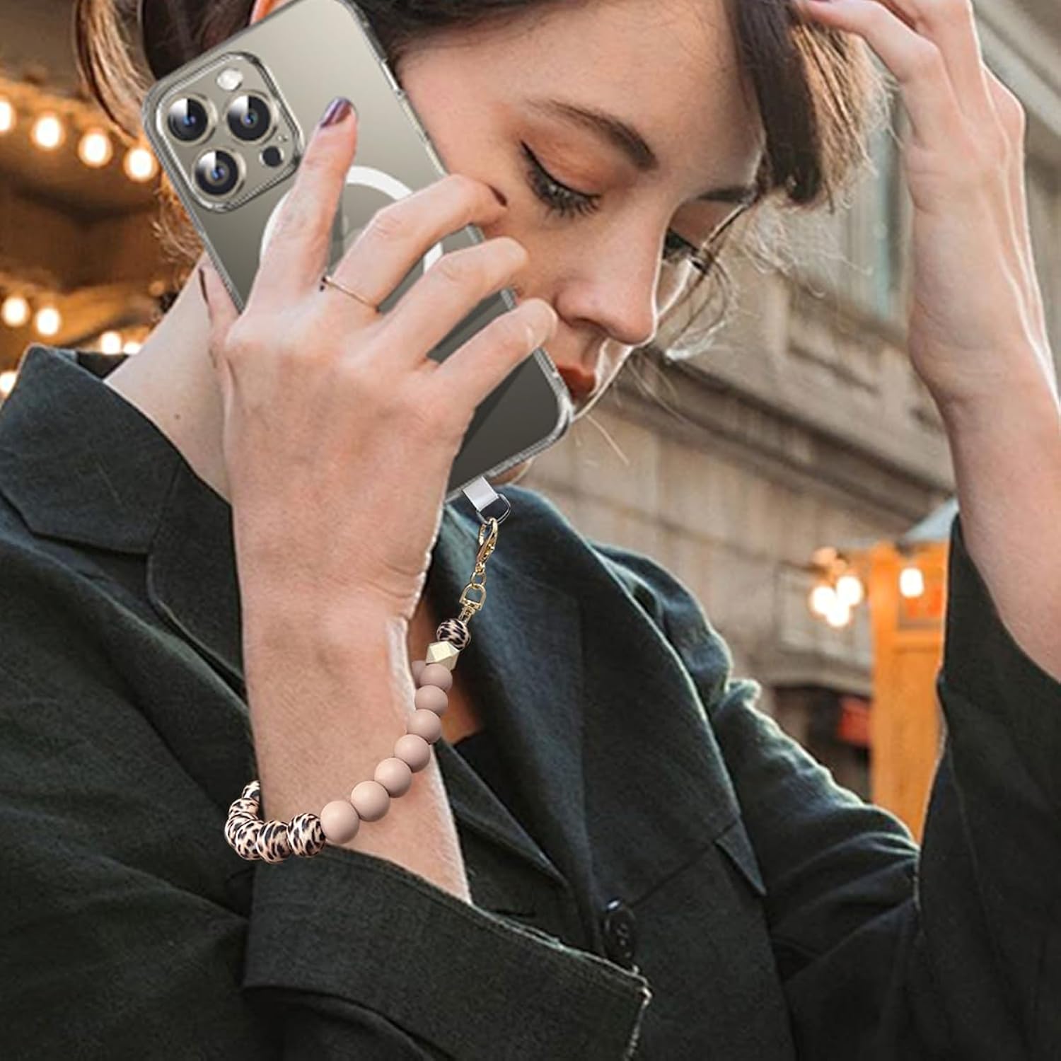 VICHUNHO Marble Silicone Beaded Phone Wrist Strap, Cellphone Lanyard with Tether Tab, Elastic Hands-Free Wristlet Bracelet