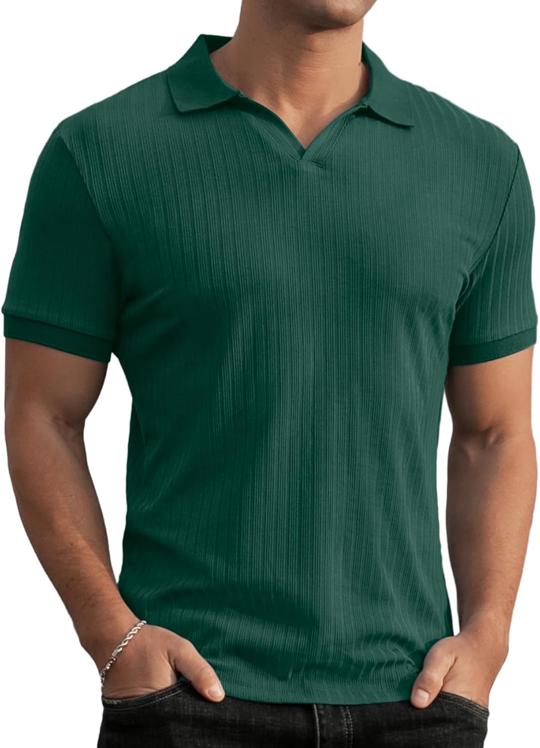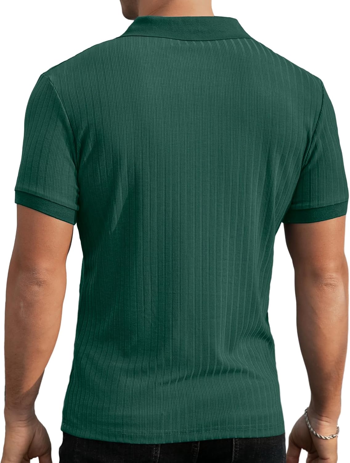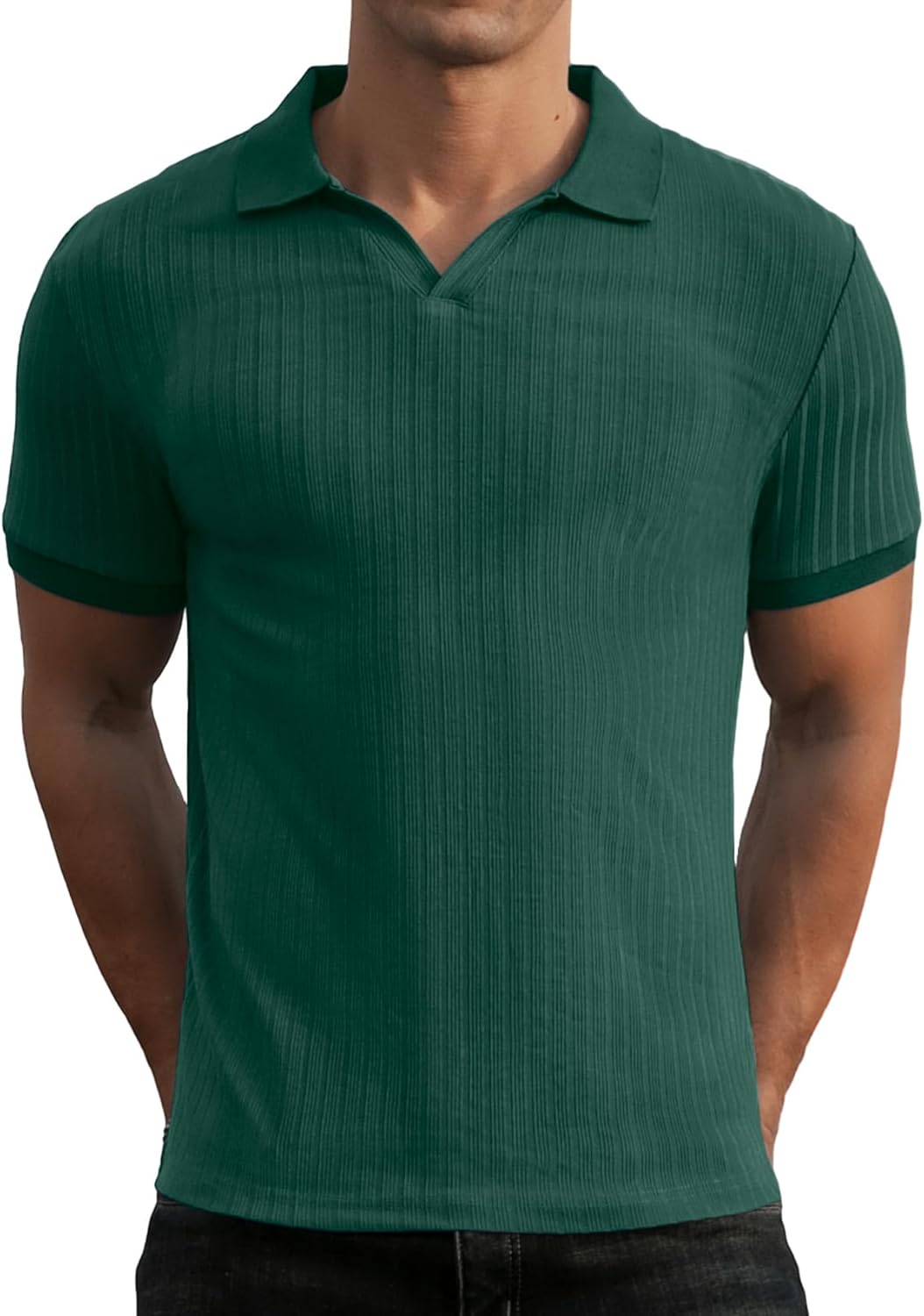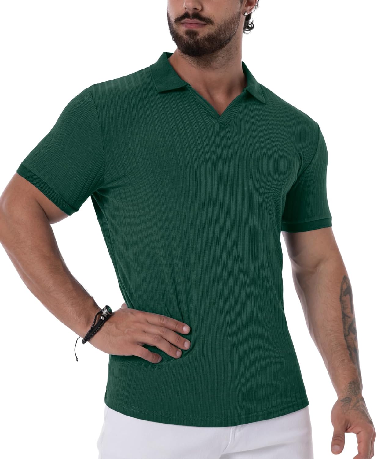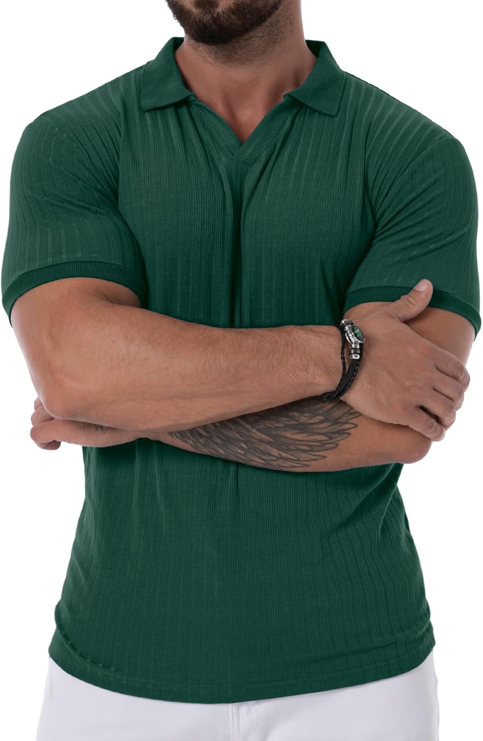 Askdeer Men's Muscle Polo Shirts V Neck Slim Fit Ribbed T Shirts Short/Long Sleeve Golf Collar Shirt Knit Casual Tee