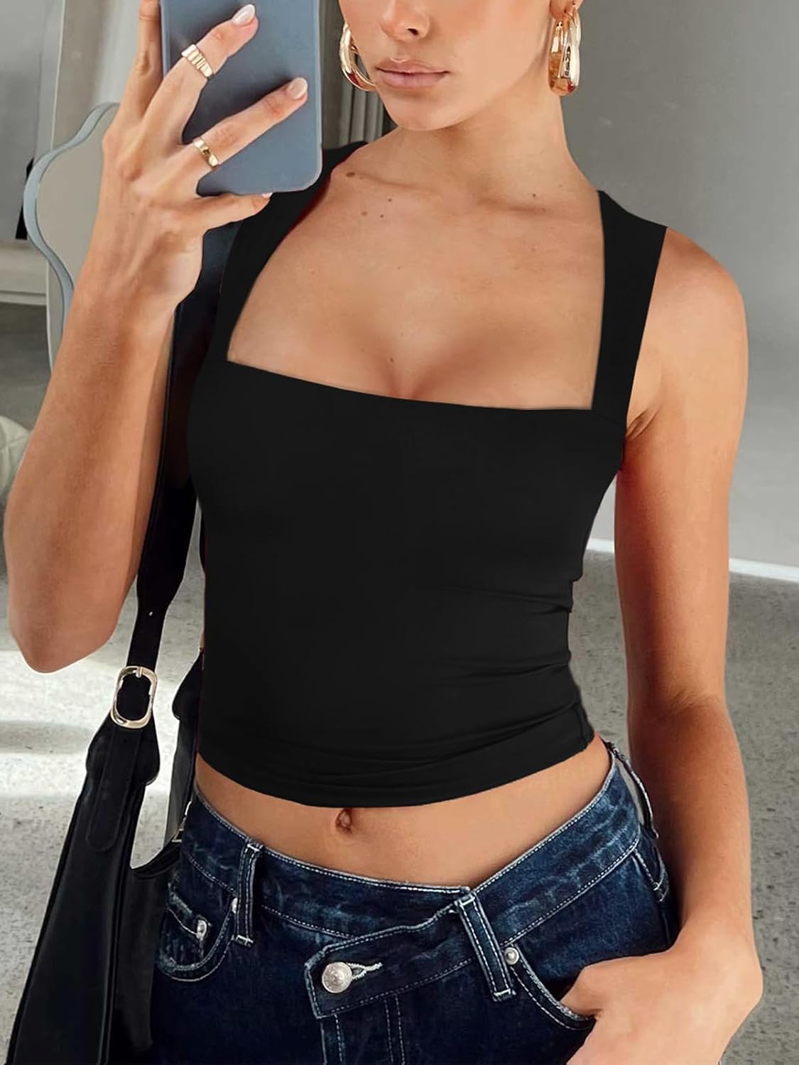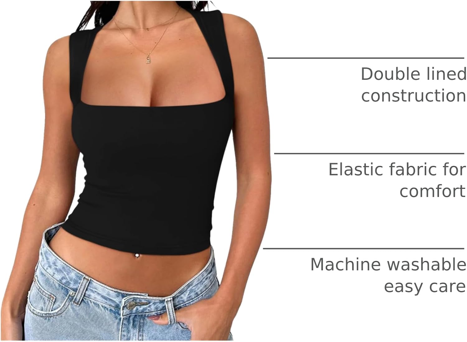 ??Design: Elevate your summer style with our cropped tops for women - the epitome of trendy fashion. The square neck tank top exudes both sophistication and allure, making it an ideal choice for your sexy going-out looks. Our cropped tank tops, designed with a double-lined feature, provide a sleek and figure-flattering silhouette.