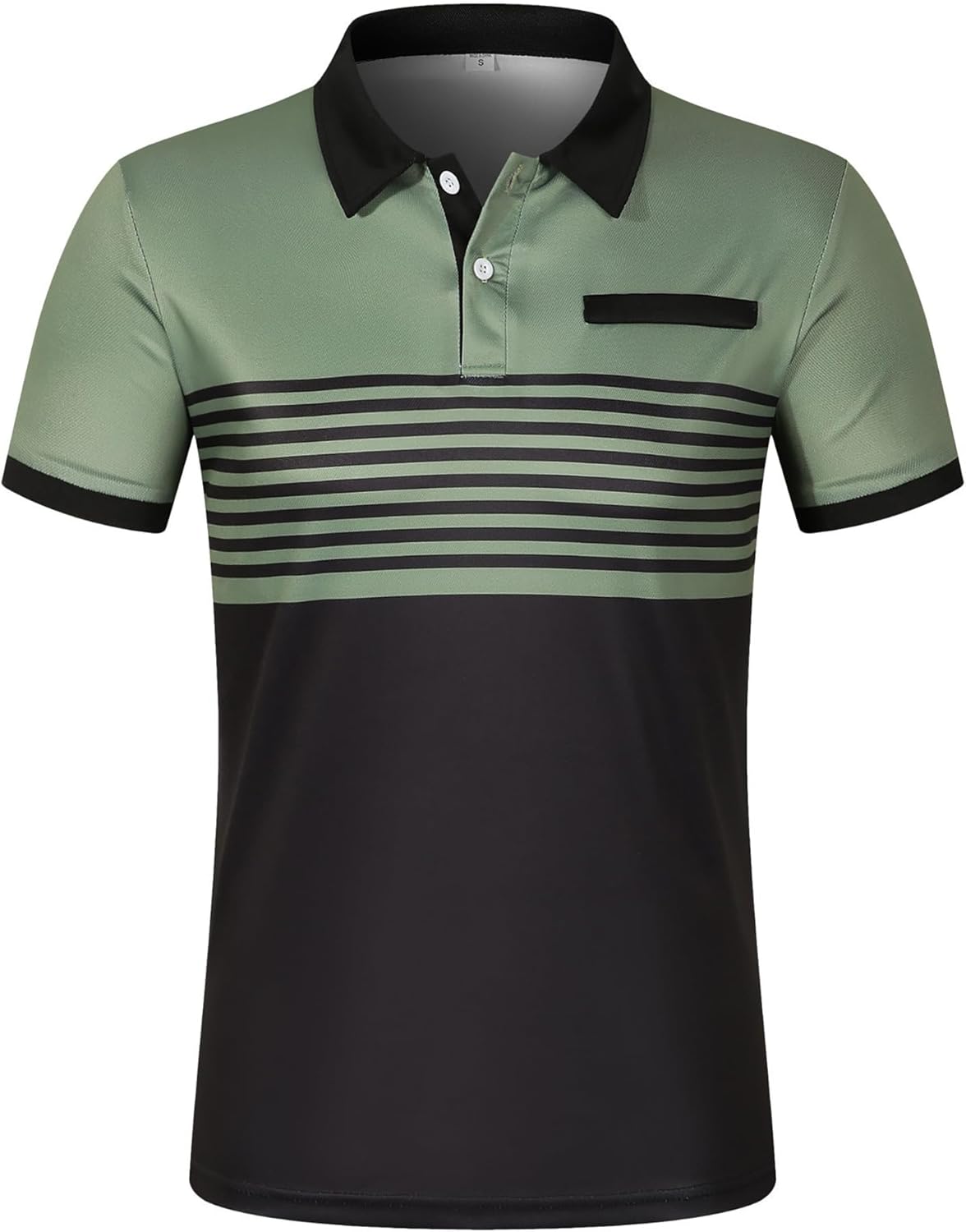 Mens Fashion Color Block Polo Shirts Casual Short Sleeve T Shirt Striped Moisture Wicking Golf Shirts Tops