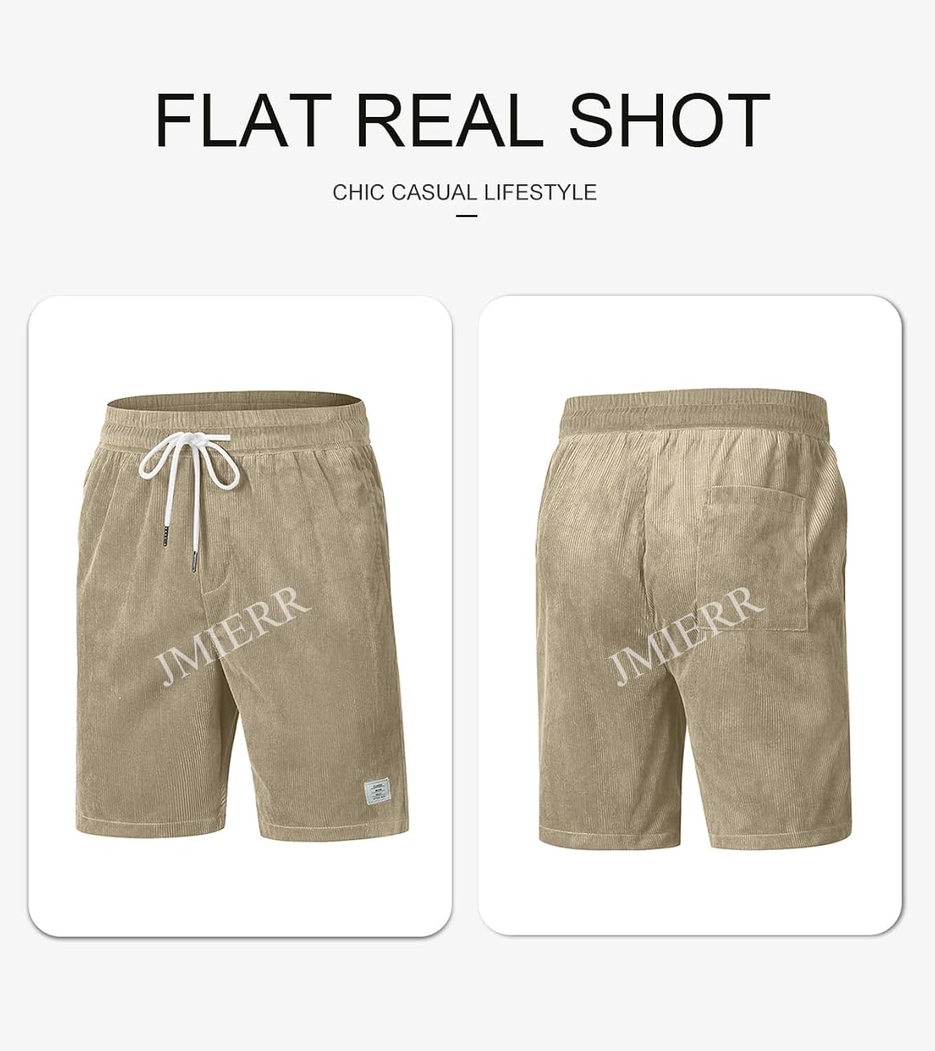 JMIERR Men's Corduroy Shorts Casual Elastic Waist Drawstring Lightweight Summer Beach Shorts