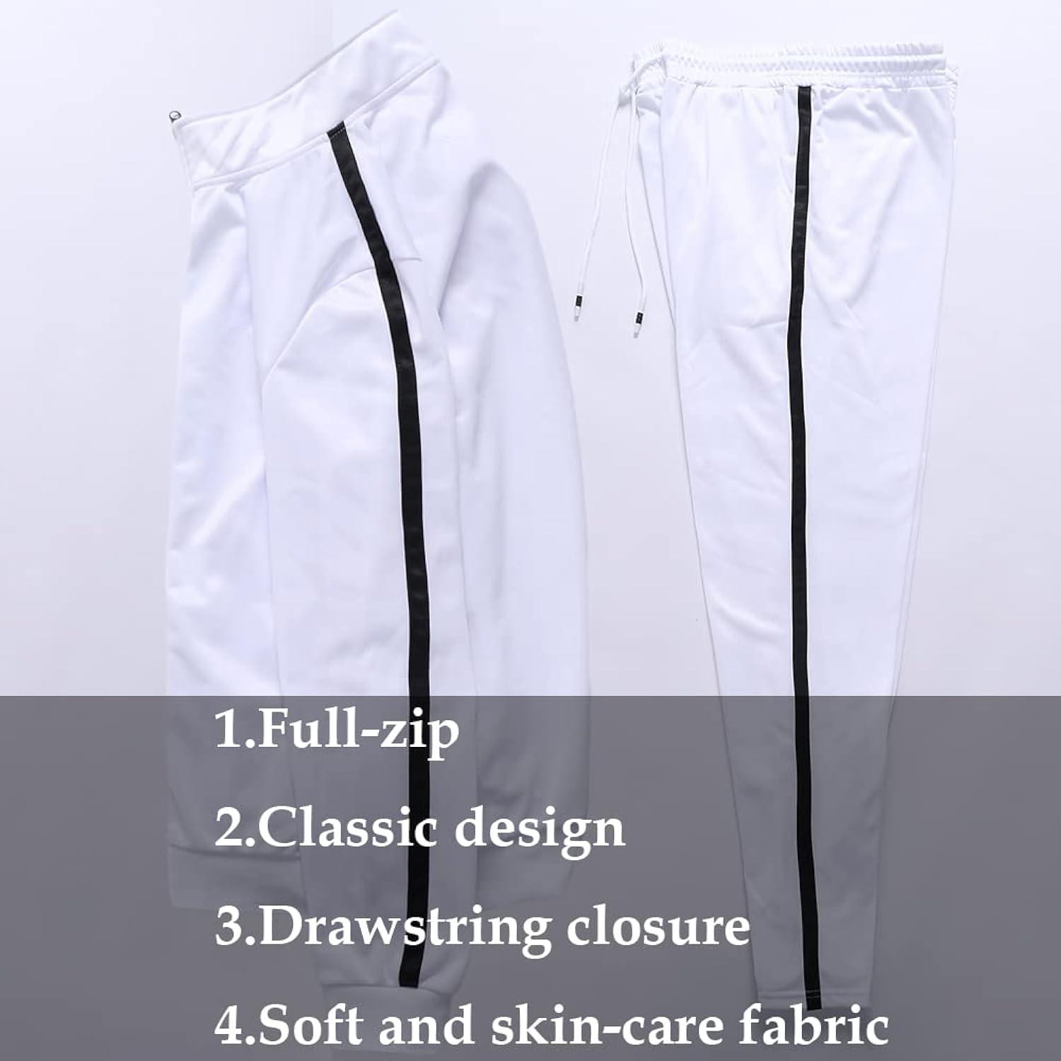 Side pockets on both jacket and pants,convenient for you to bring small things with you,like keys,phone.Full-zip front offers easy on-and-off.