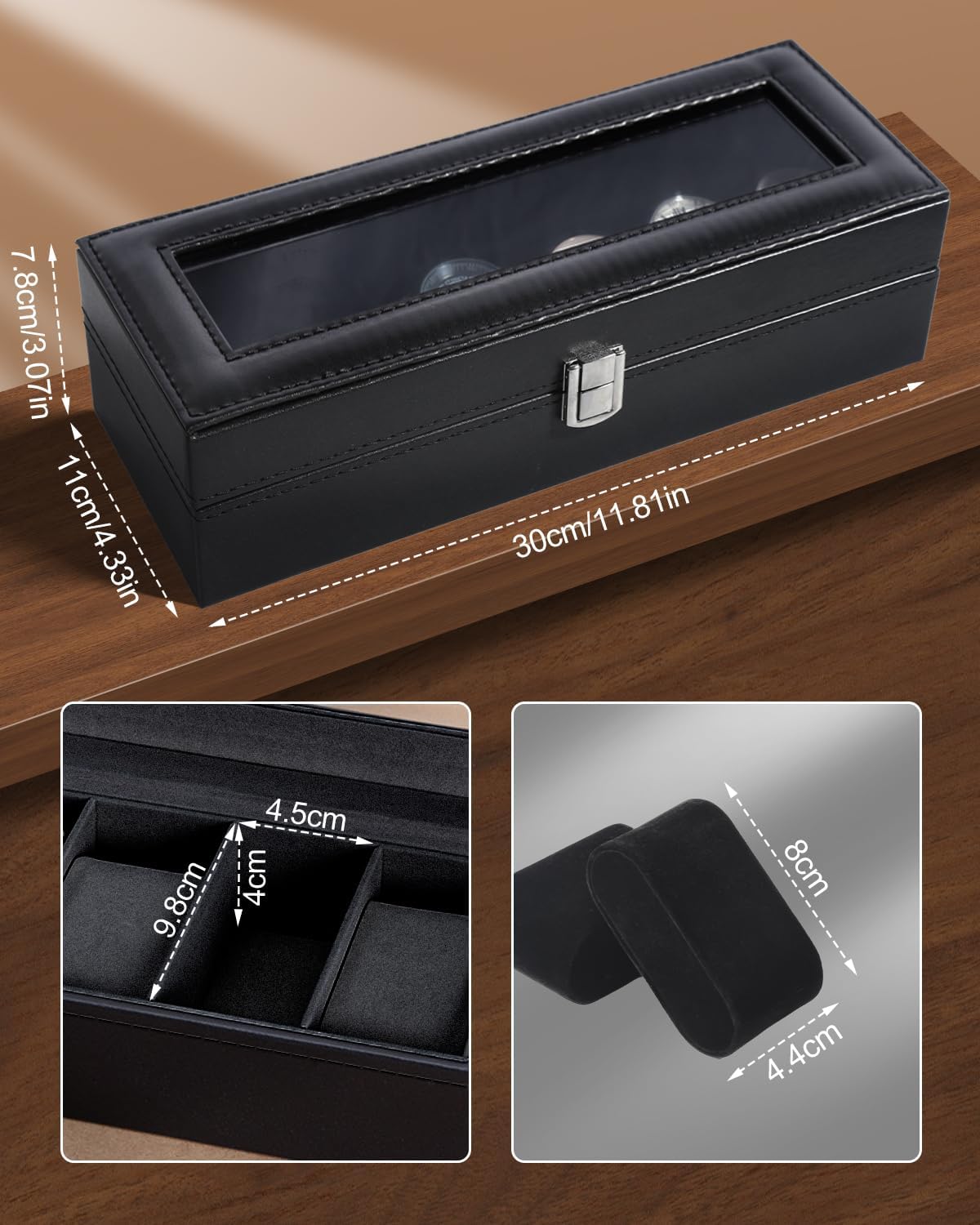 【Real Glass Lid & Display Box】 Without having to open the lid of the watch jewelry box, through the large glass you can find the right watch to match your outfit of the day in seconds. A great watch organizer for a gentleman or lady to display their entire chronometer collection, tastefully protecting, storing and displaying precious watches.