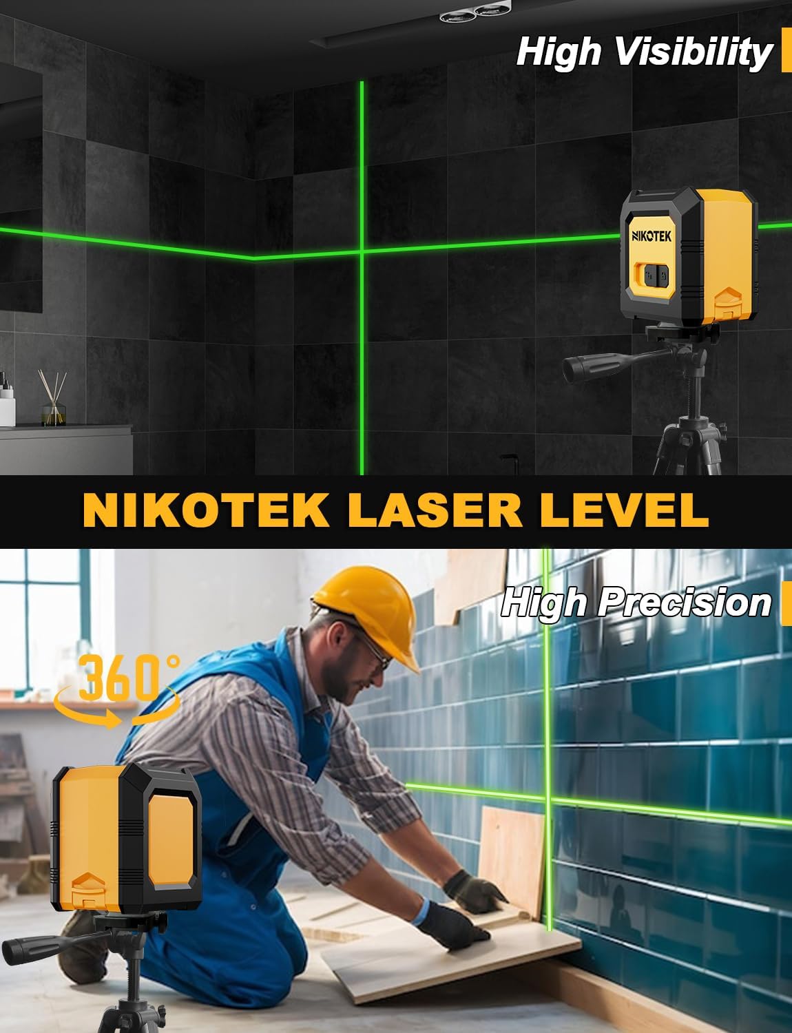 Nikotek Laser Level with Tripod, Self-Leveling Green Beam Horizontal and Vertical Cross-Line Laser for Home Decoration Car...
