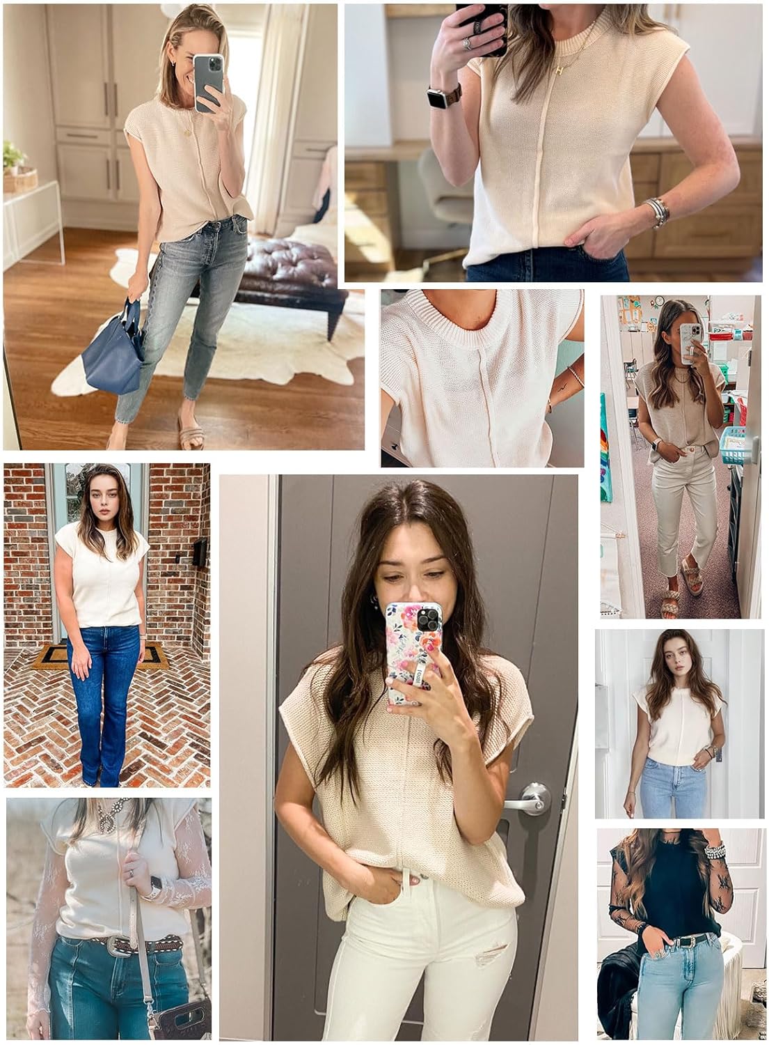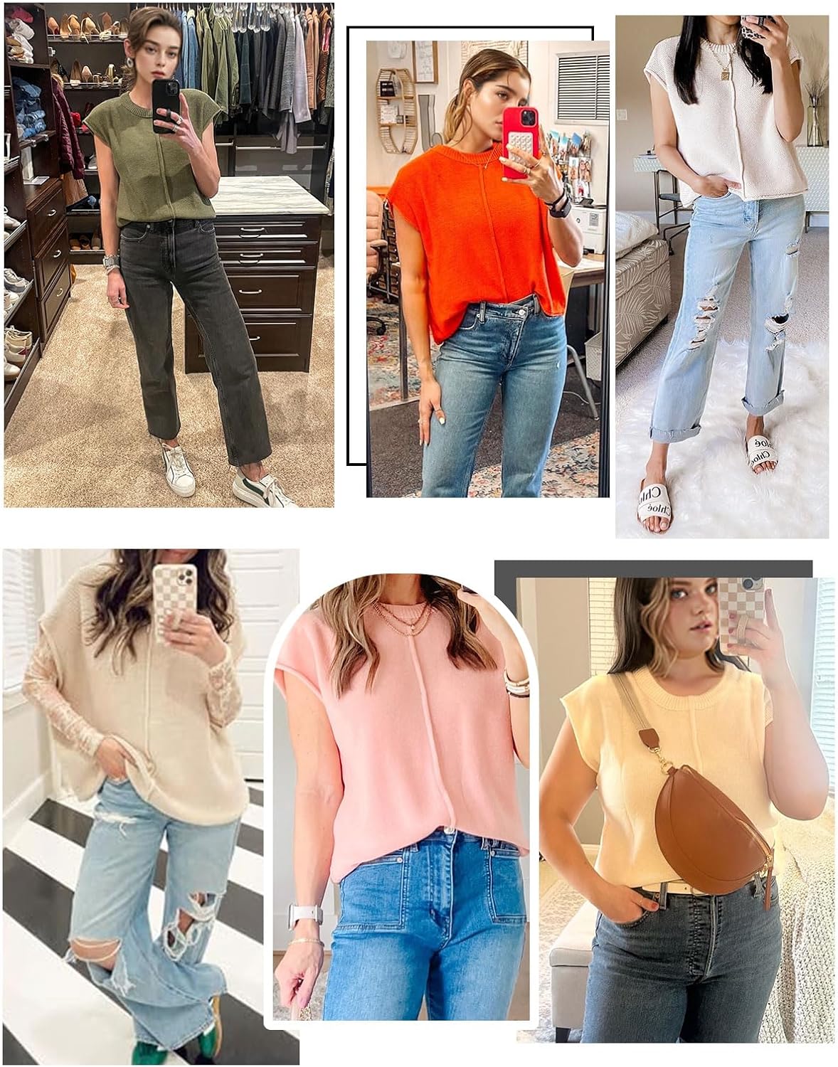 Womens Summer Cap Sleeve Tops 2025 Trendy Loose Knit Sweater Vests Cute Shirts Outfits Spring Fall Casual Tops