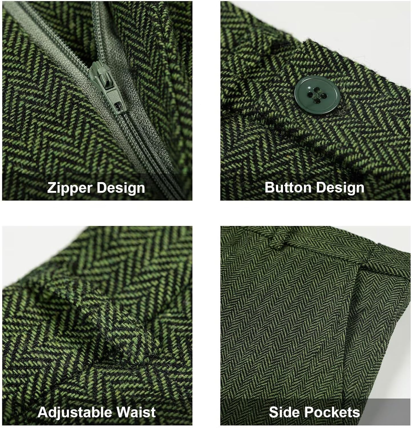 Stylish design:Classic Designs,Single Breasted ,Notched Lapel ,2 Buttons Tweed Formal Slim fit Blazer Jacket Vest Pant.