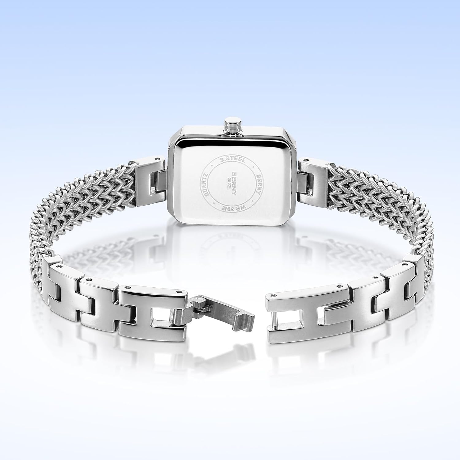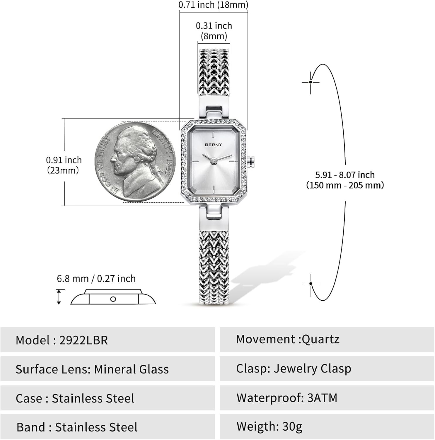【Elegant Design】This mini rectangular ladies' watch showcases a raised lens and beveled glass design surrounded by sparkling diamonds that catch the light beautifully, with a perfect blend of colours that transforms timekeeping into an art form and makes every moment a visual delight.making.