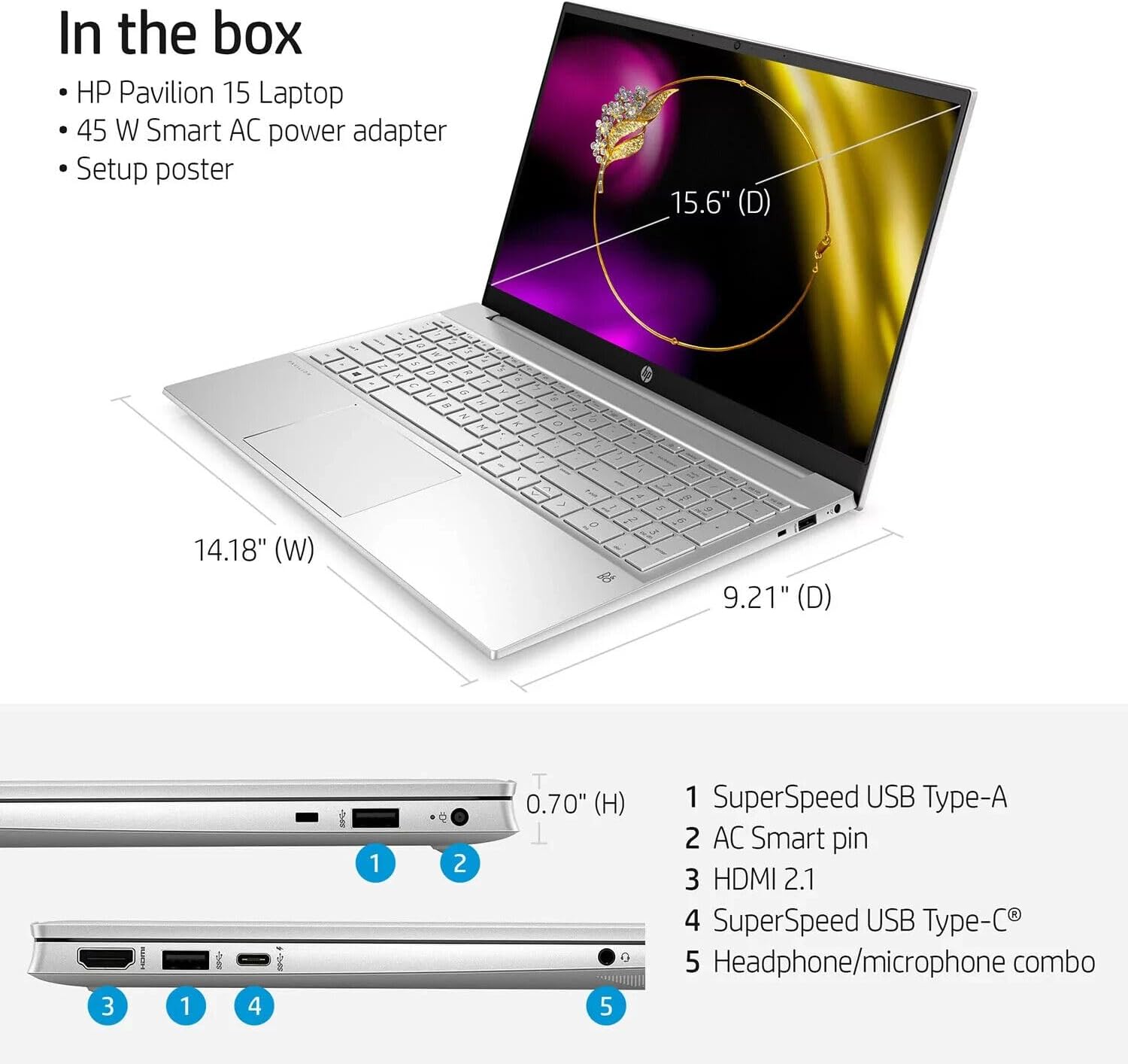 【12th Generation Intel Core processor】Featuring a 12th Gen Intel Core i7-1255U processor, this HP Pavilion 15.6" FHD laptop offers high-speed performance for multitasking and advanced office tasks, ensuring efficient work without slowdowns.