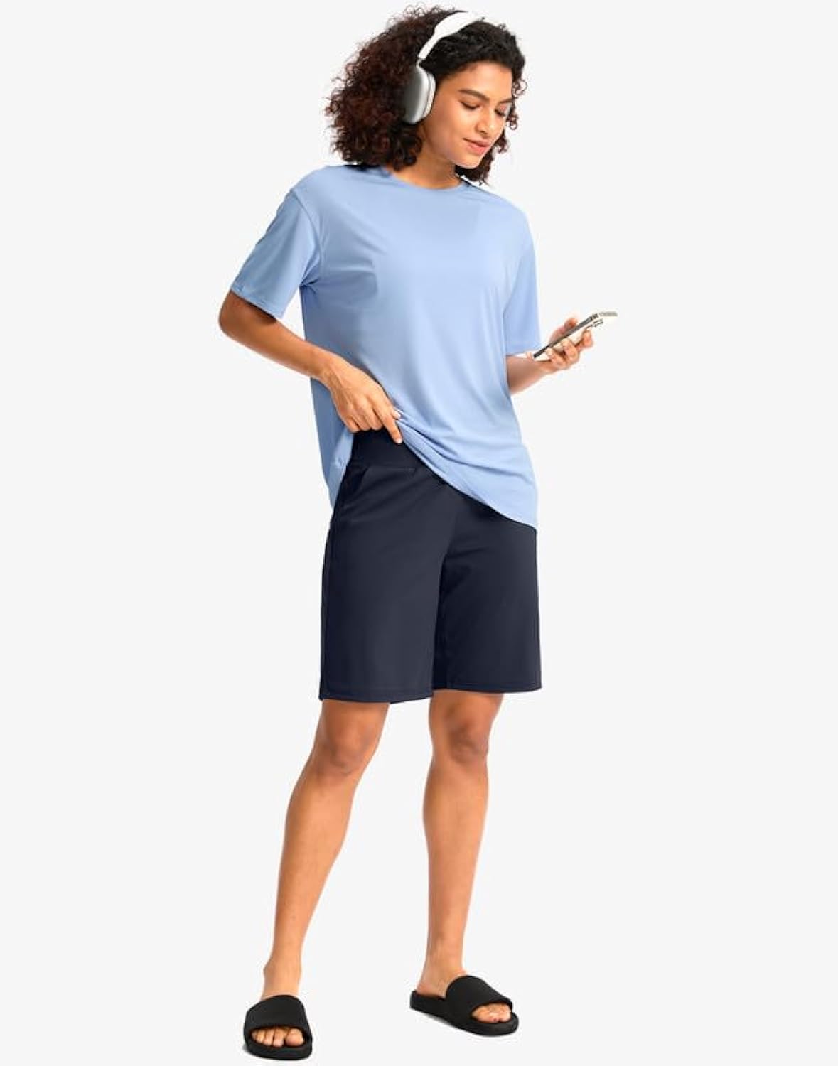 G Gradual Women's Bermuda Long Shorts with Pockets High Waisted Knee Length Shorts for Women Walking Athletic Workout