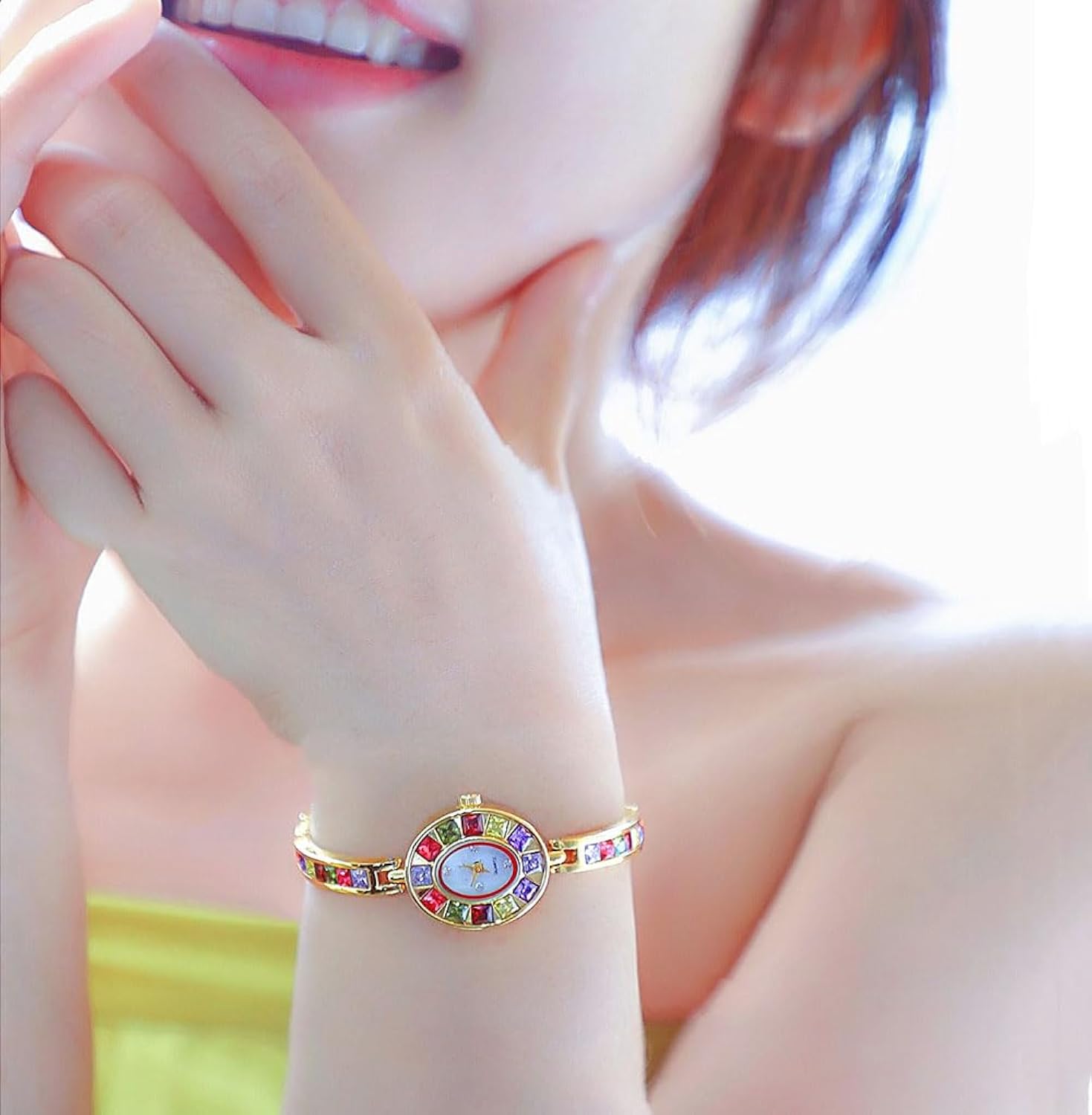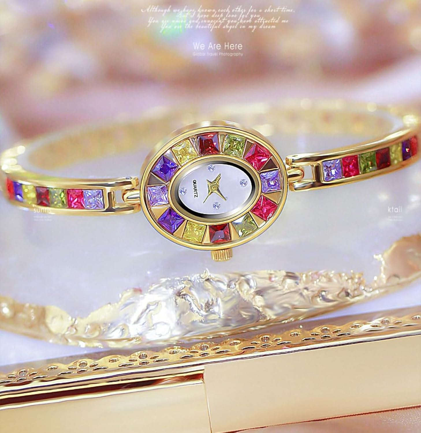 ADSBIAOYE Luxury Vintage Colorful Crystal Oval Watch Fashion Ladies Small Dial Dress Quartz Wrist Watch Waterproof Watch