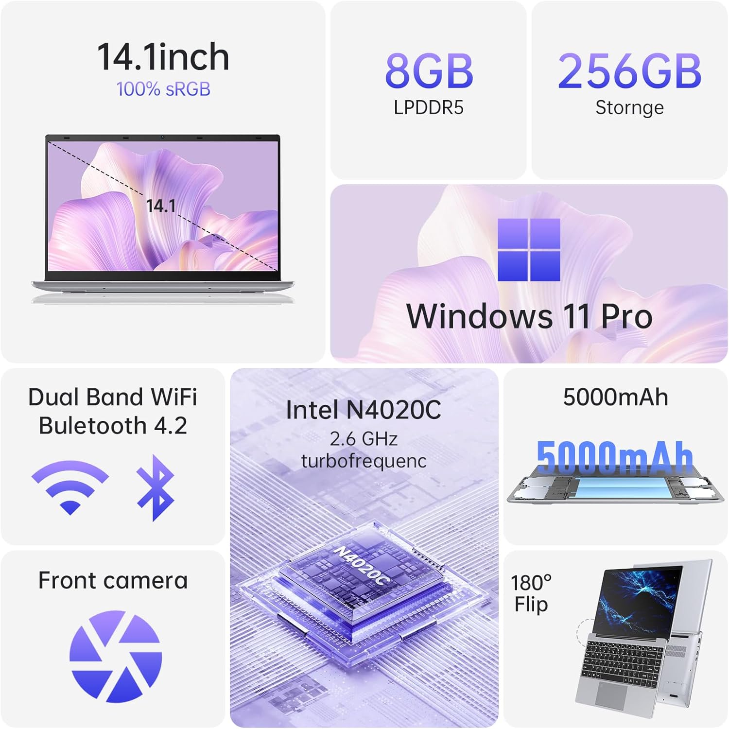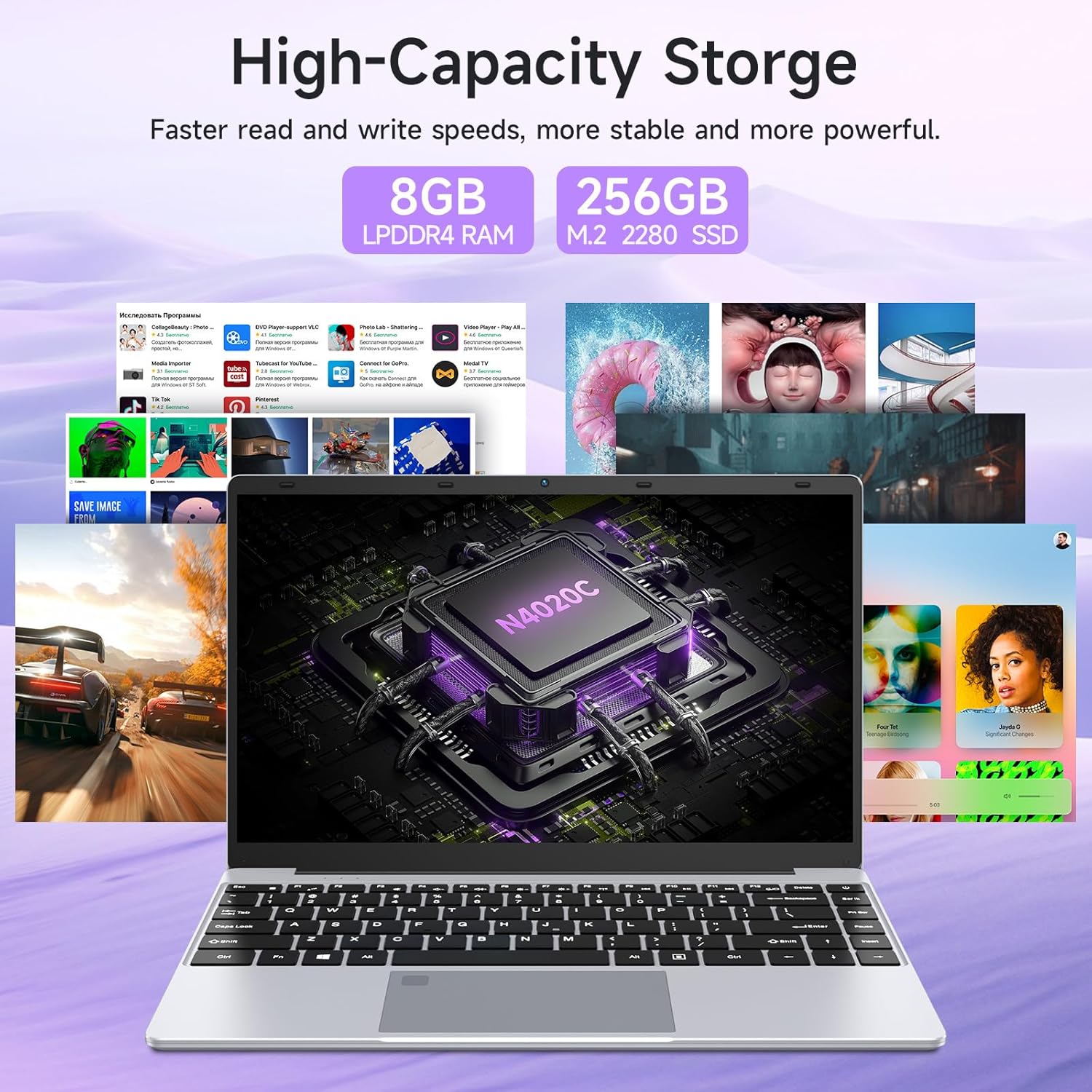 【Work Smart and Efficiently】N4020C computer with 8GB RAM, and 256 GB SSD storage, make multiple applications execute seamlessly. Up to 128GB TF card expansion (not included) and a separate M.2 SSD expansion(Up to 1TB). Thanks to the large capacity, you can switch between more applications and store more favorite documents or movies.