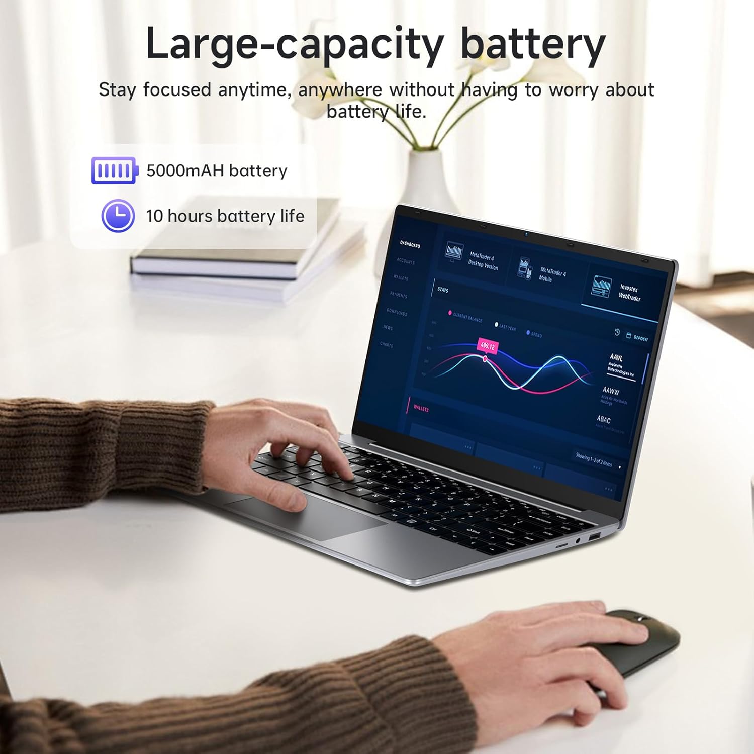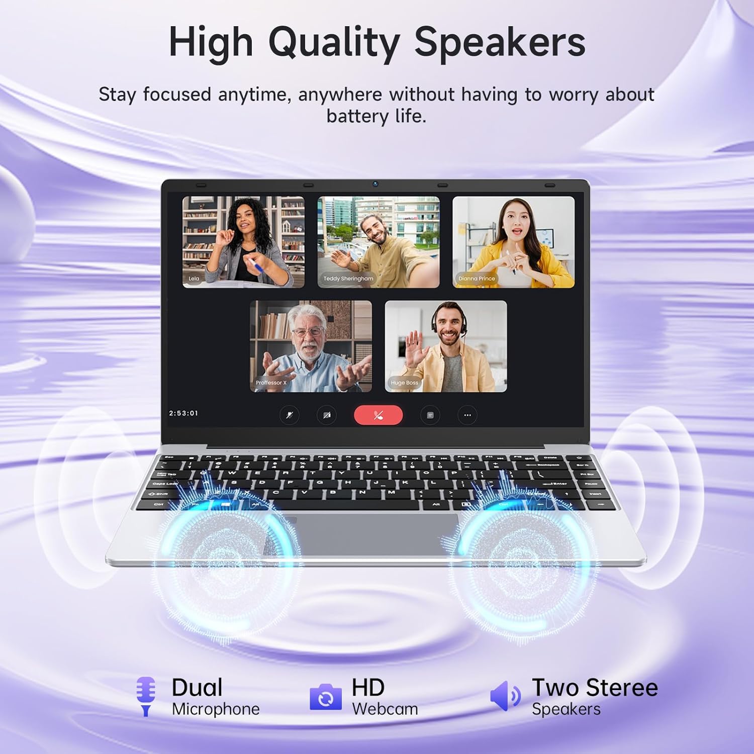 【Seamless Connectivity&Long-lasting Battery】 Windows 11 pro laptop with webcam offers versatile port support including USB Type-C, USB Type-A, HDMI, Wi-Fi 2.4G/5G, and Bluetooth 4.2, ensuring effortless connectivity to various devices. Featuring a 5000mWh battery, Laptops delivers up to 8 hours of cordless computing.