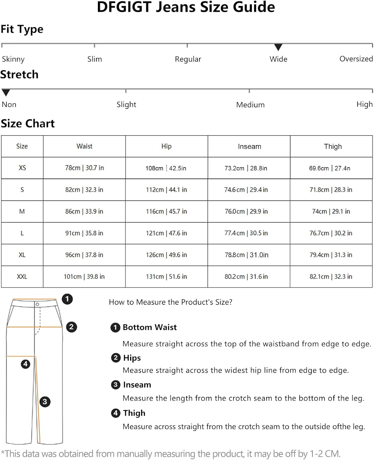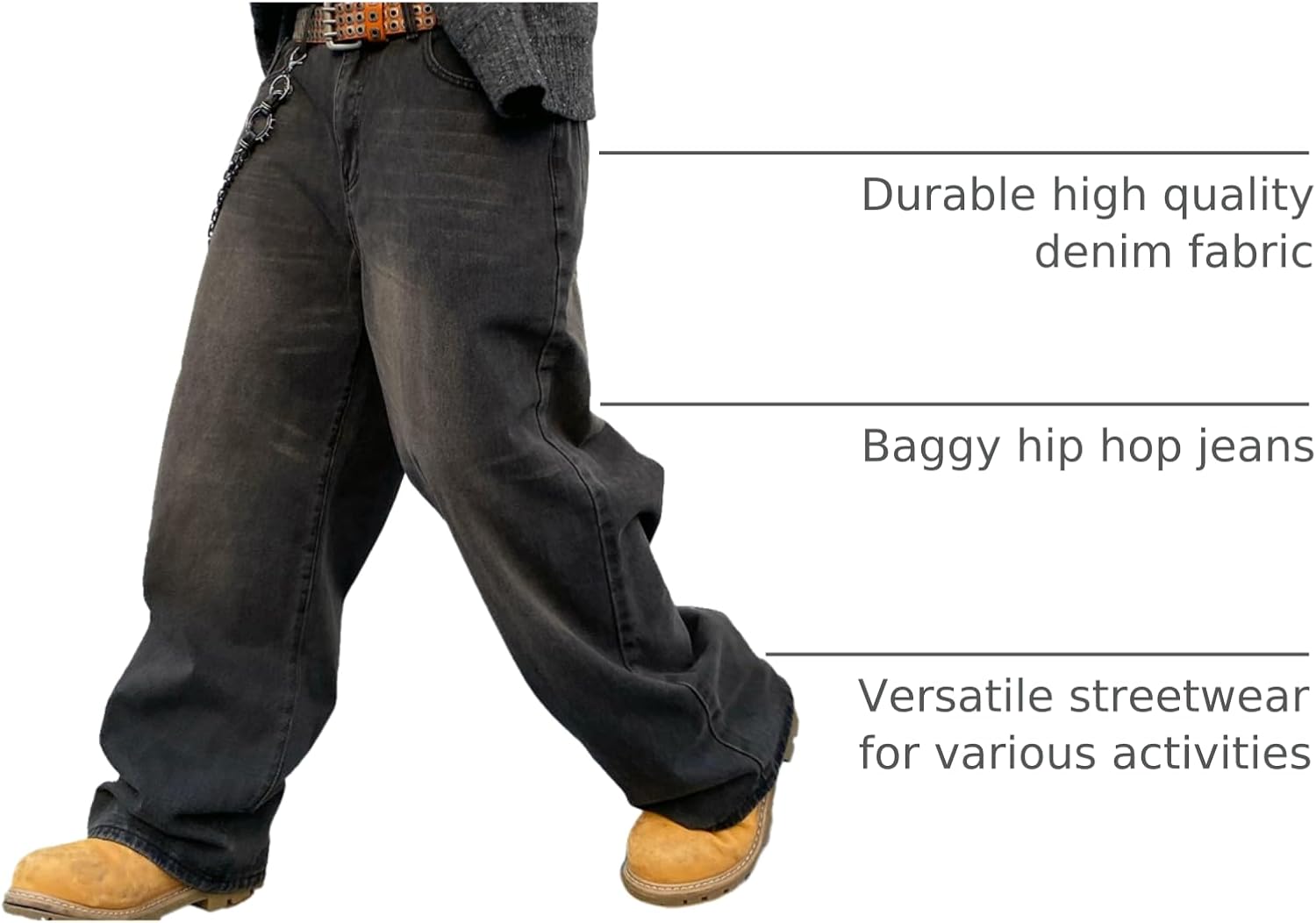 DFGIGT Men's Baggy Hip Hop Jeans Wide Leg Skater Denim Pants Casual Loose Fit Long Trousers Streetwear