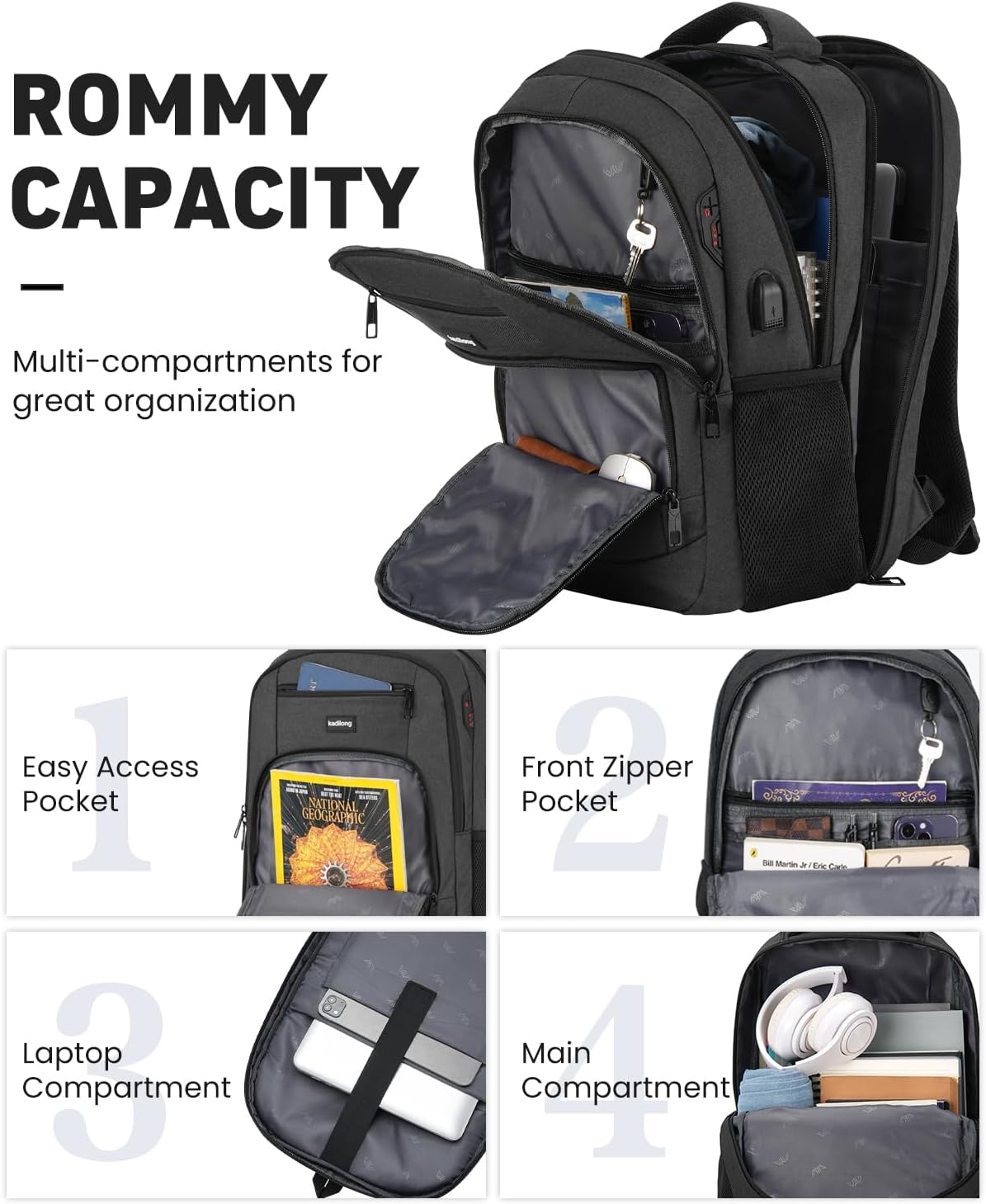 kadilong 17.3 Inch Laptop Backpack Men for Student Teen Boy,School Bookbag Schoolbag College Computer Bag with USB Chargin...
